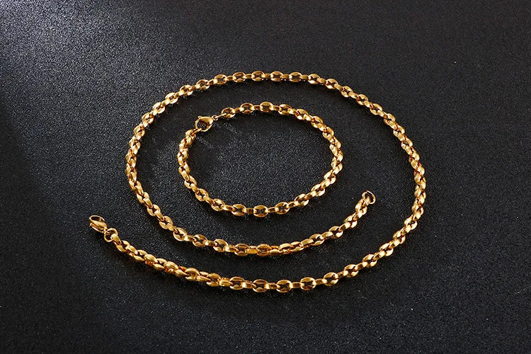 Wholesale Jewelry Simple Style Solid Color Titanium Steel 18K Gold Plated Plating Jewelry Set - Gold