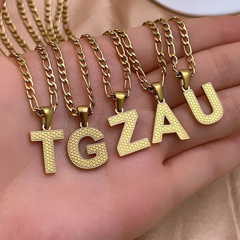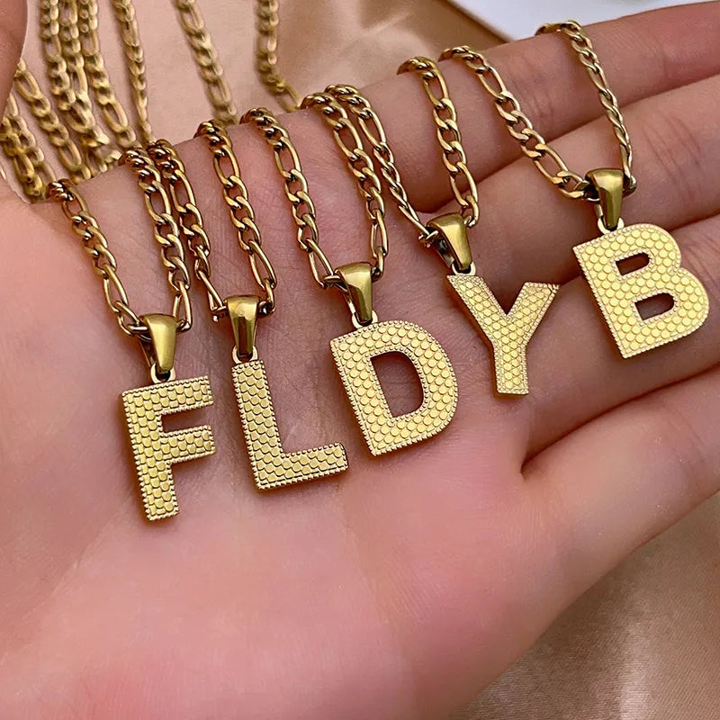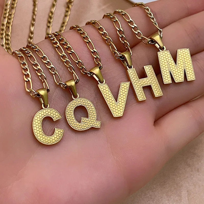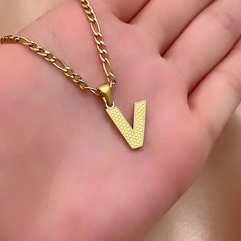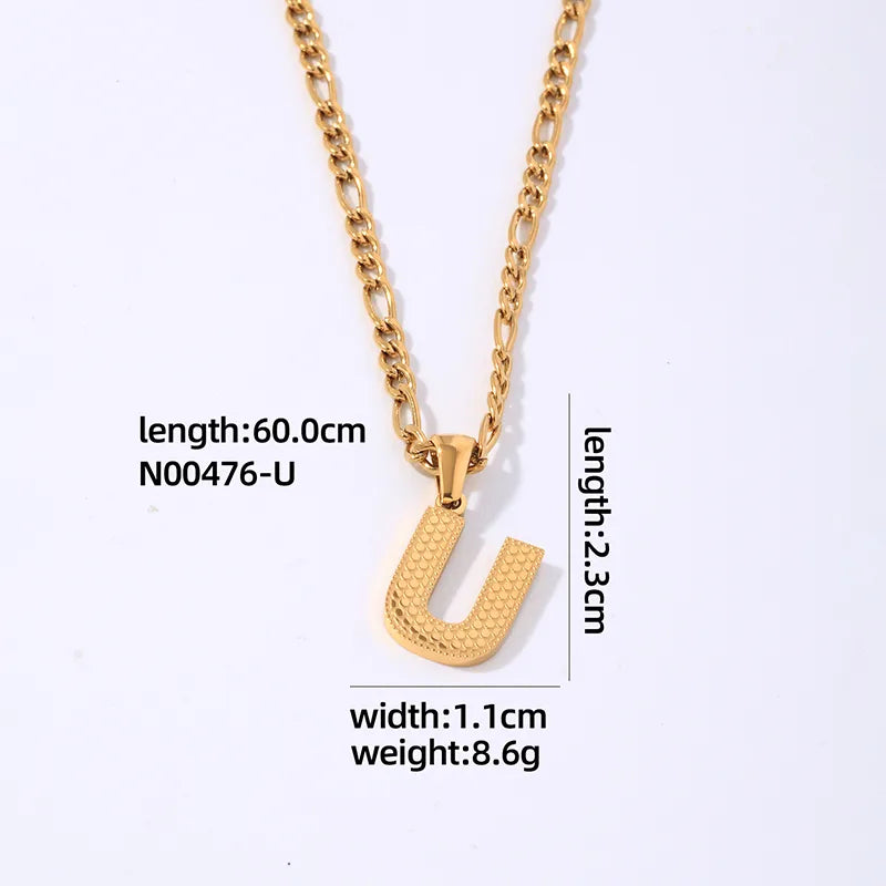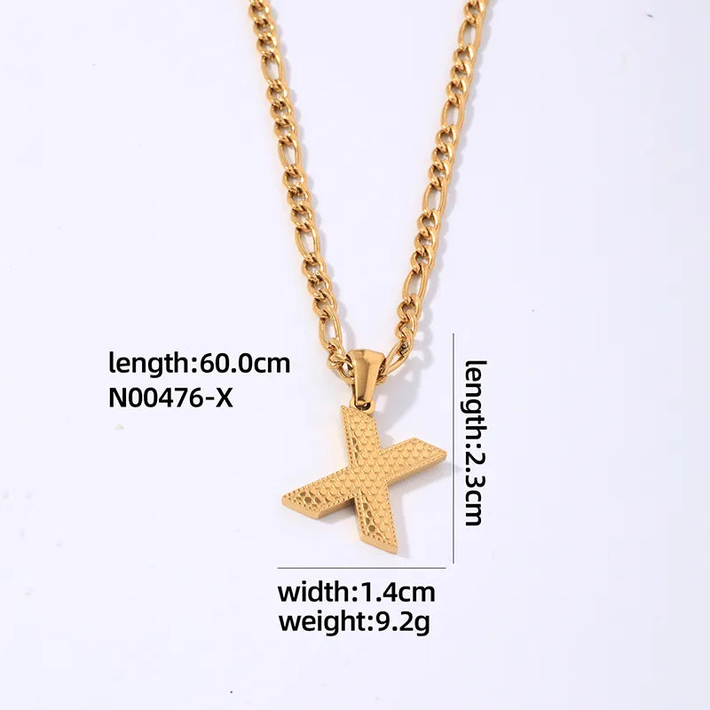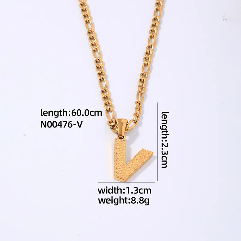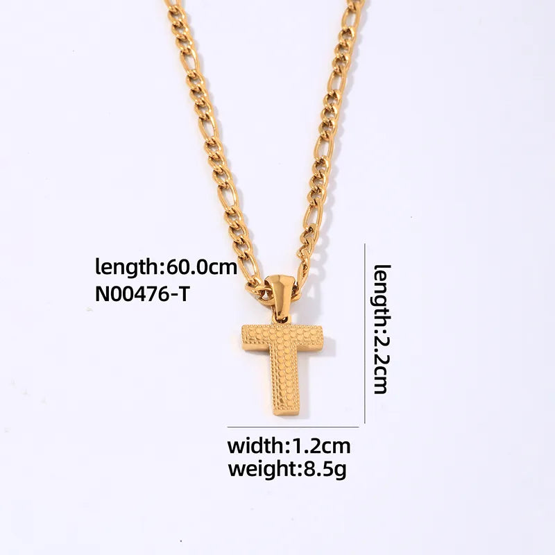 304 Stainless Steel Titanium Steel K Gold Plated Hip-Hop Simple Style Roman Style Polishing Plating letter Pendant Necklace - 476-A