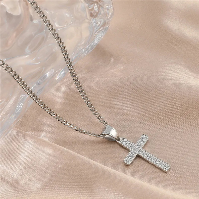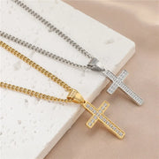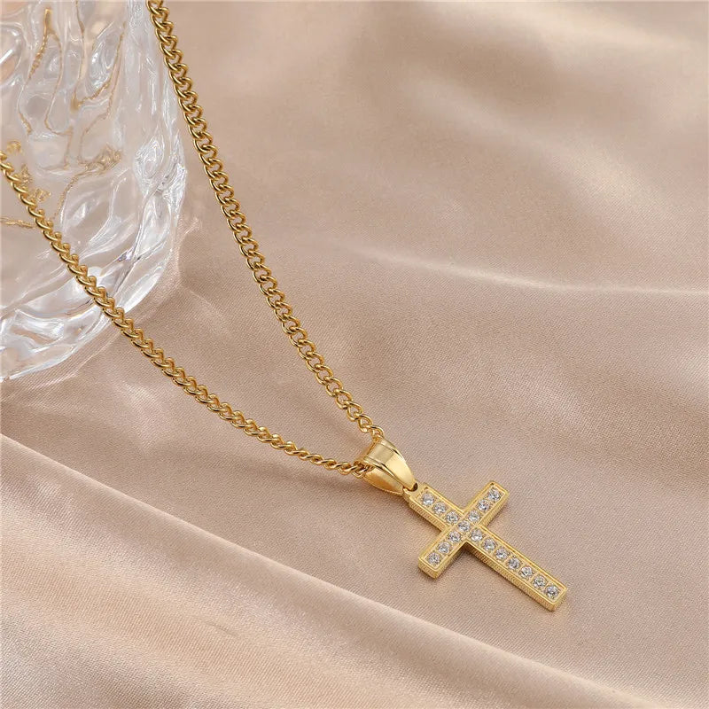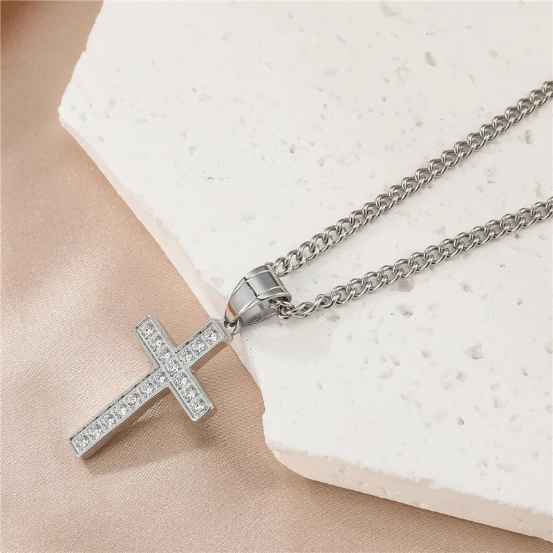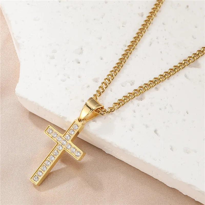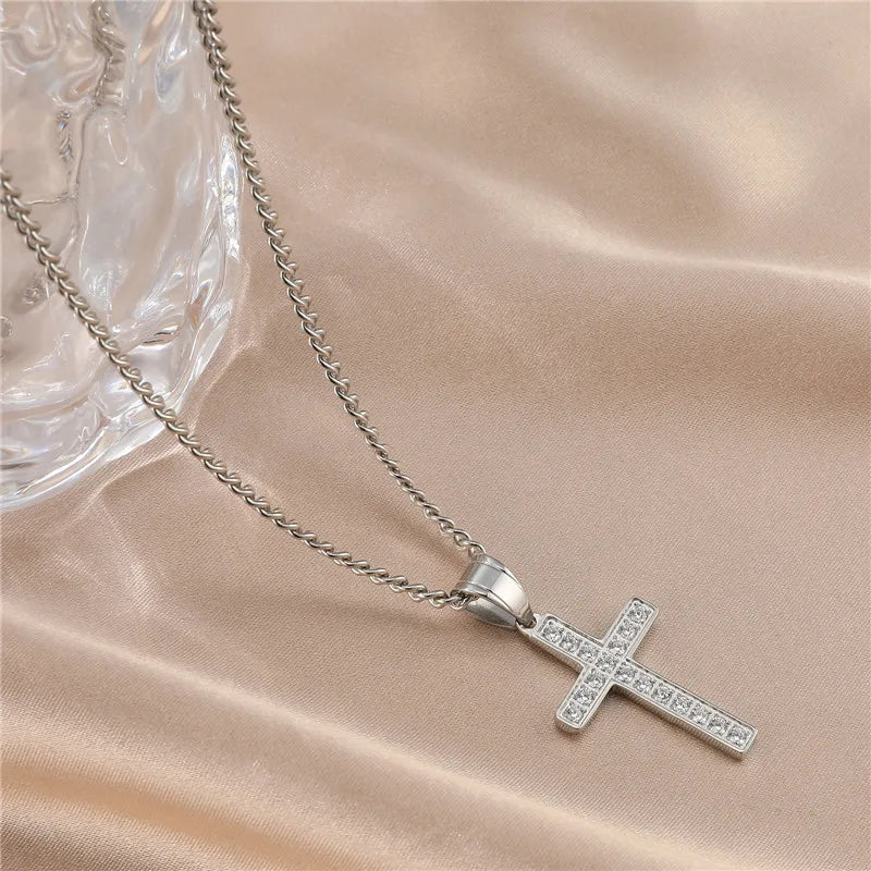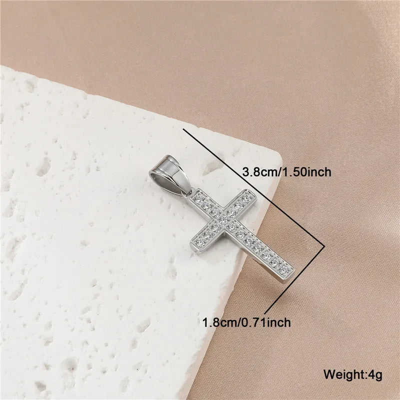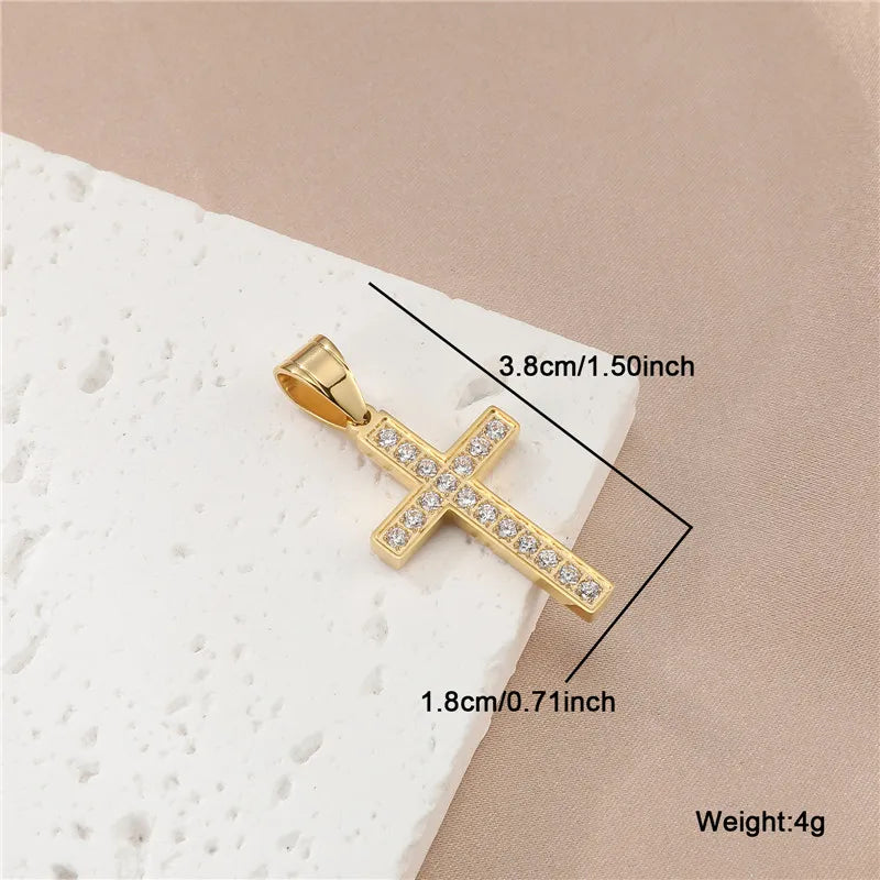 casual simple style cross stainless steel plating inlay zircon gold plated men's pendant necklace