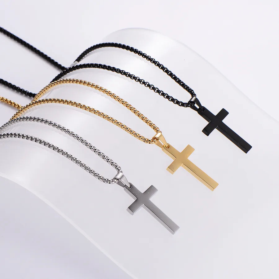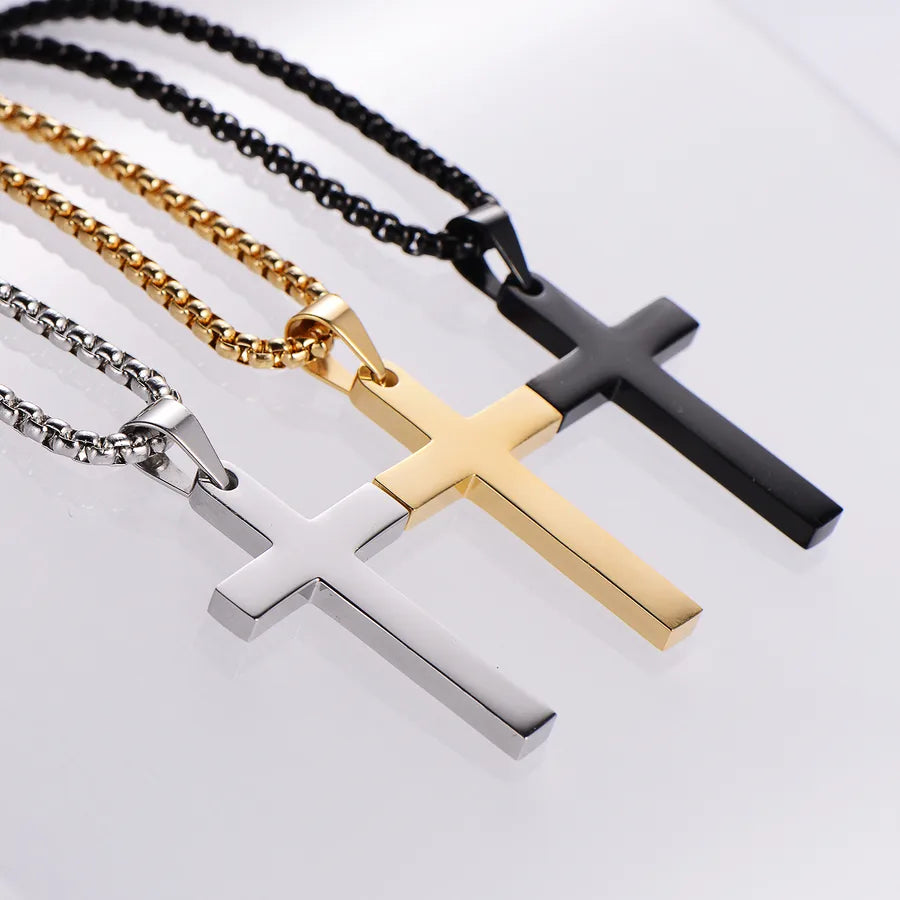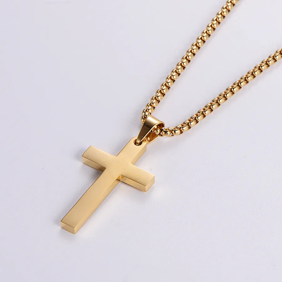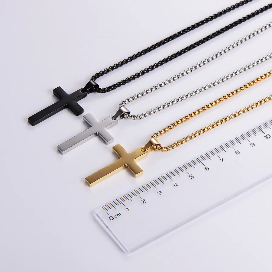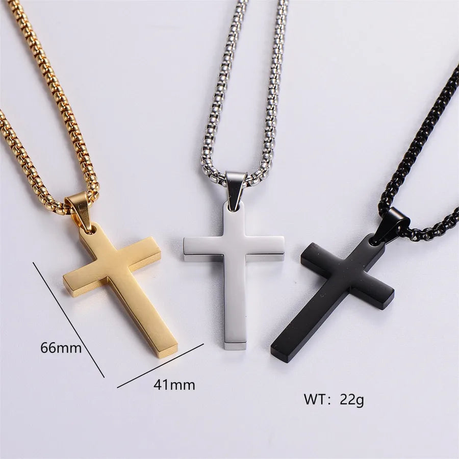 Classic Style Cross 304 Stainless Steel Plating 18K Gold Plated Women's - Steel Color / Chain 0.3 * 30cm