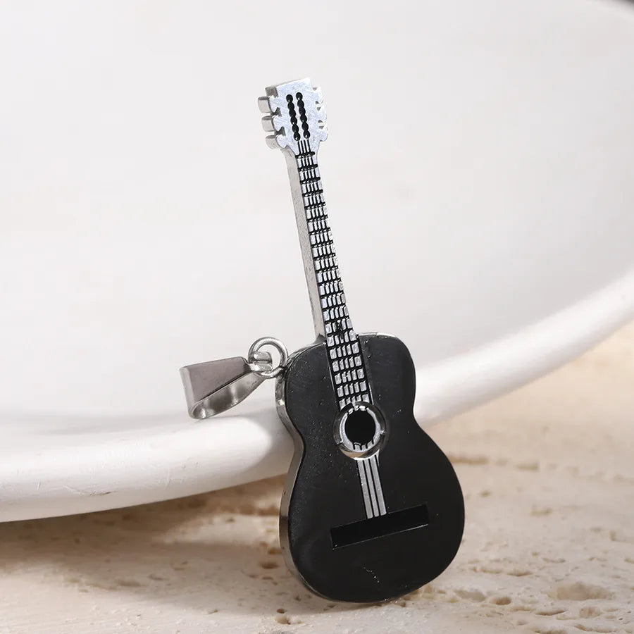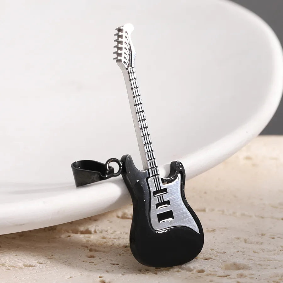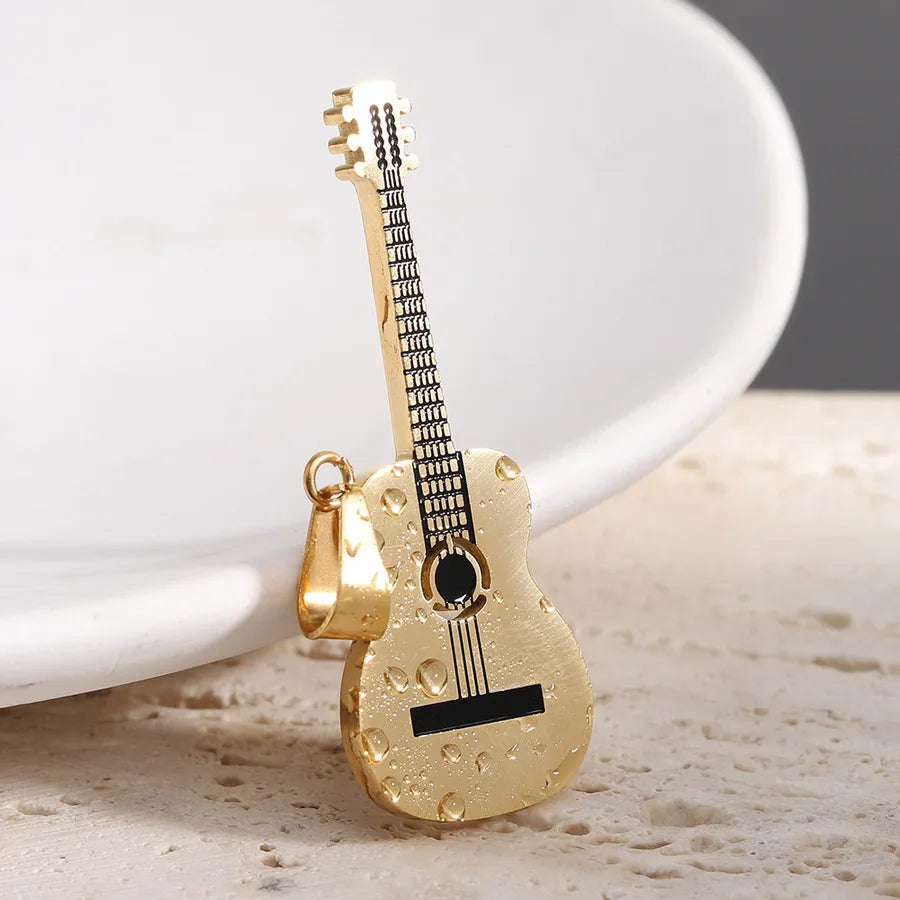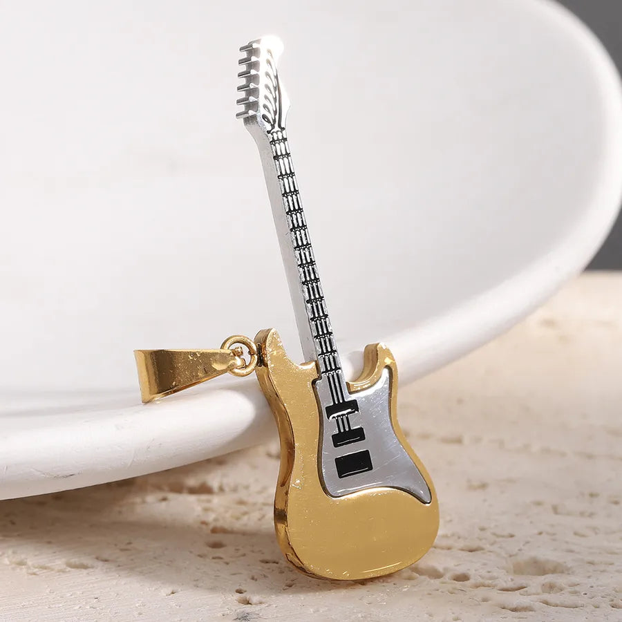european and american ins internet celebrity style personalized hip-hop fashion stainless steel guitar pendant street rap trendy men's titanium steel necklace - Steel Gold 1 without Chain