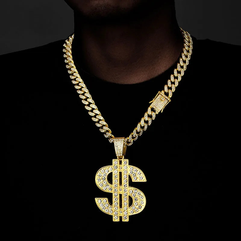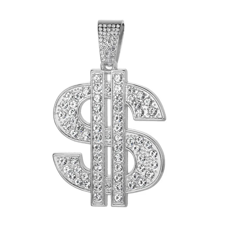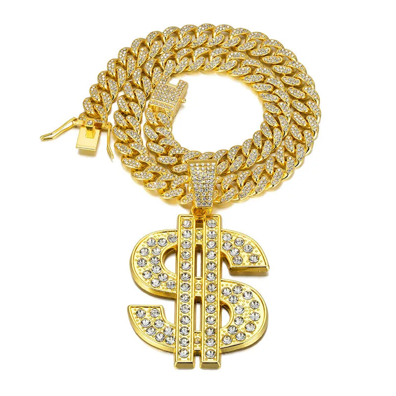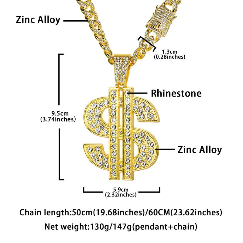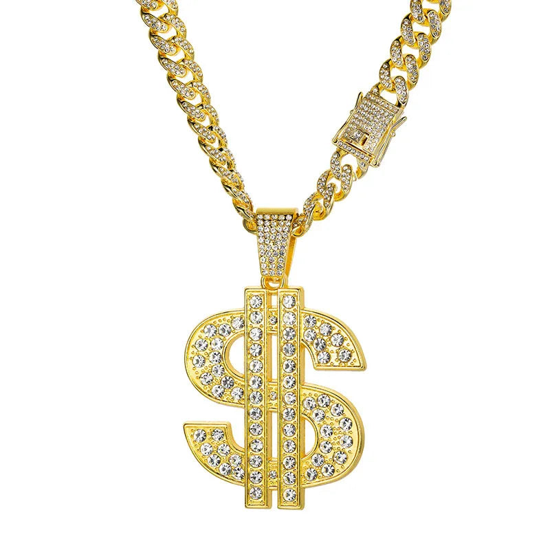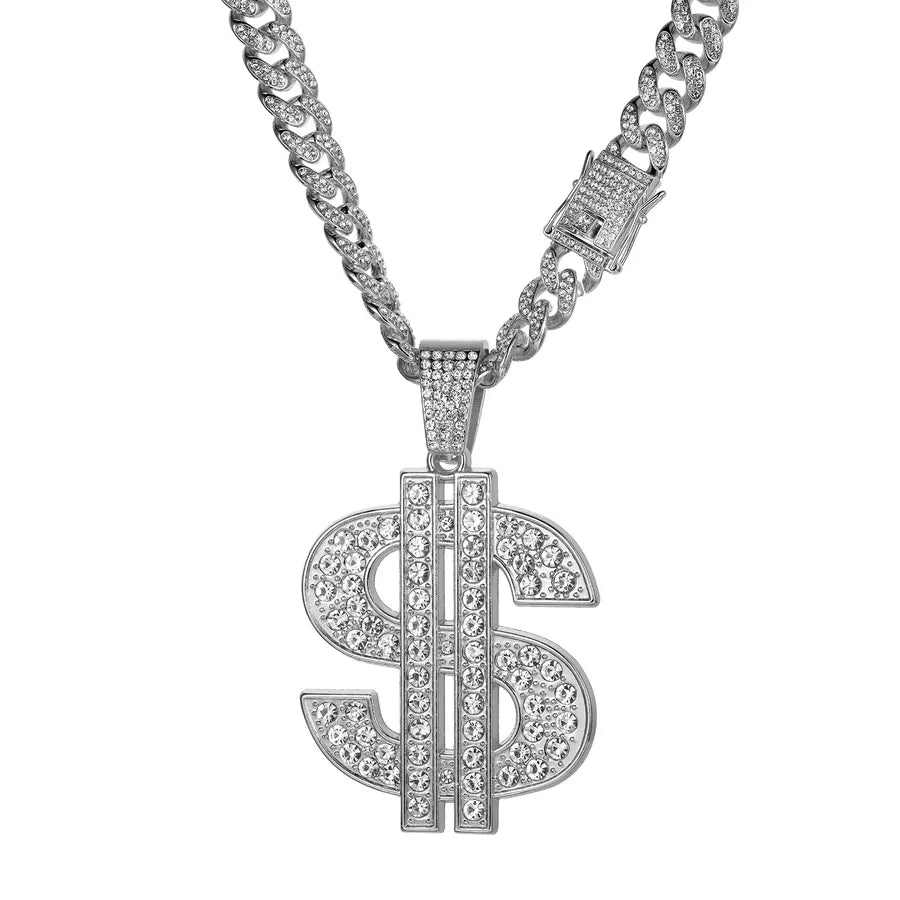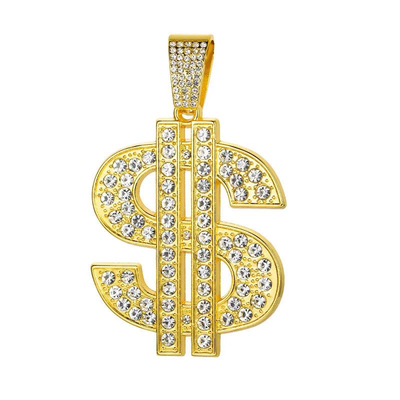 Exclusive for 13mm Cuban Link Chain USD Symbol Pendant Zinc Alloy Full Diamond Gold-Plated Necklace Hip Hop Ear Accessories Wholesale - Gold Single Pendant