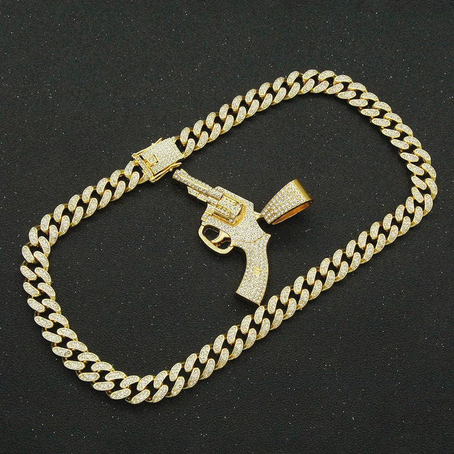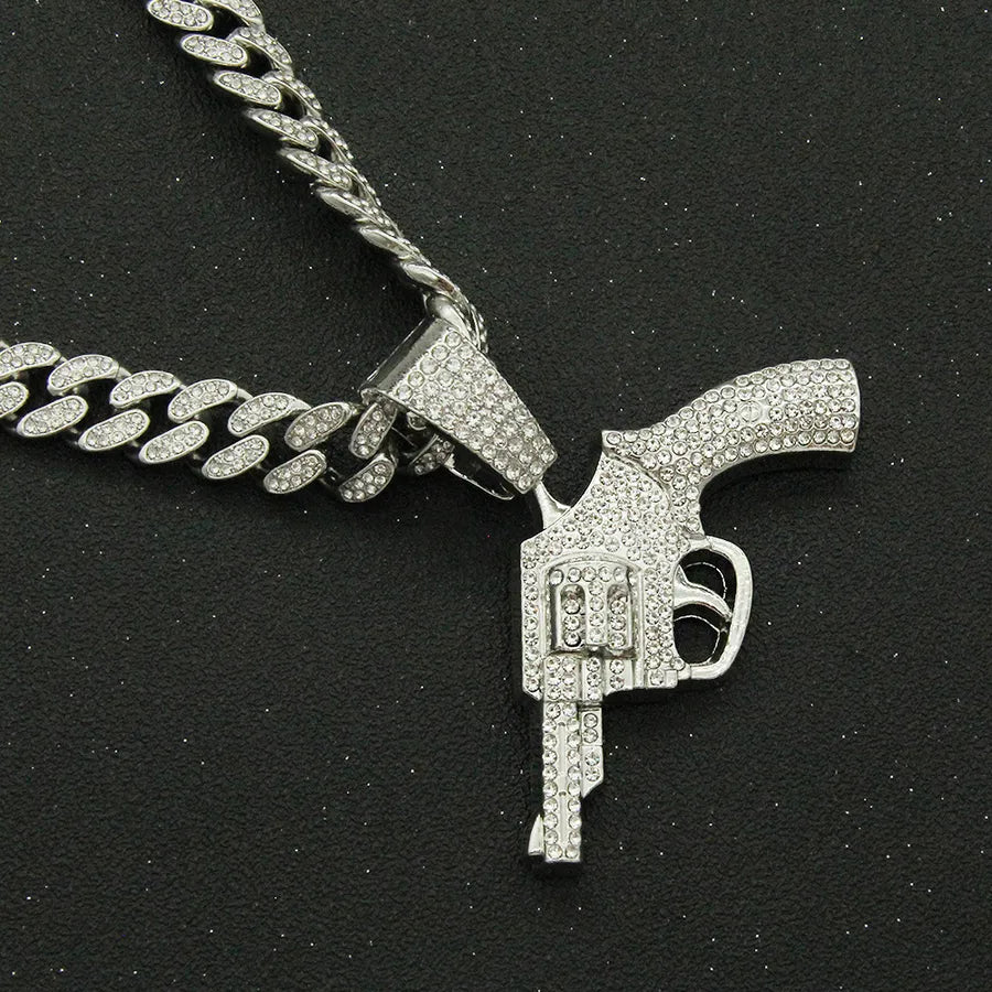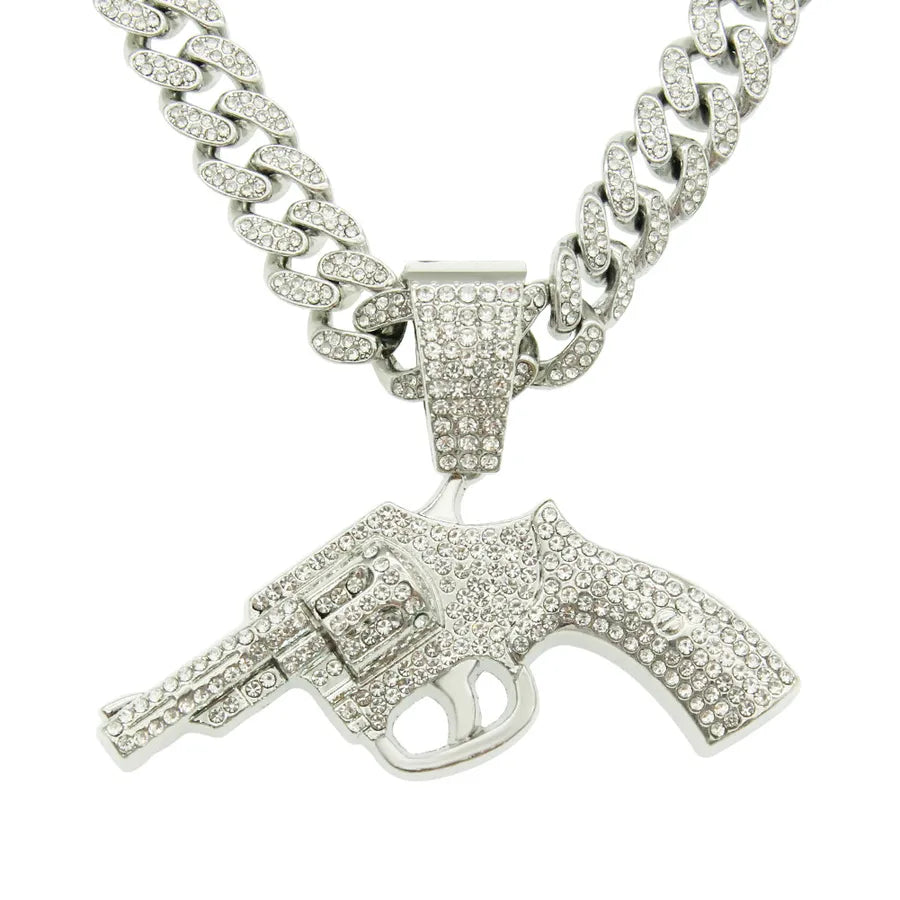 fashion full diamond gun pendant cuban chain alloy necklace