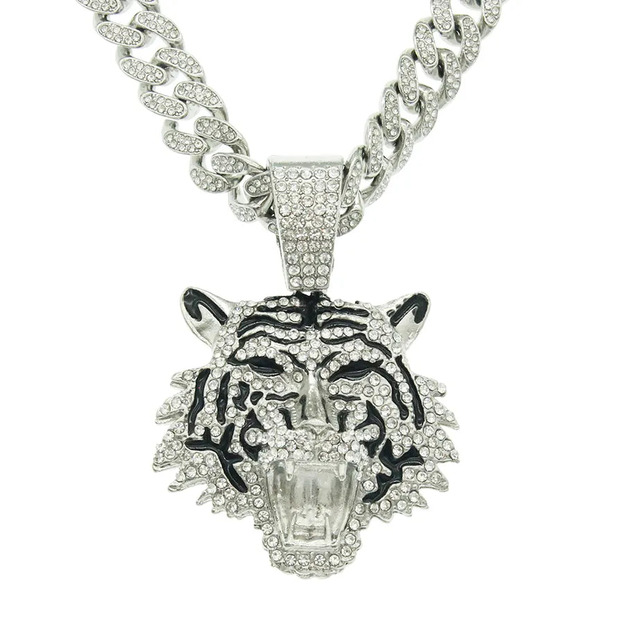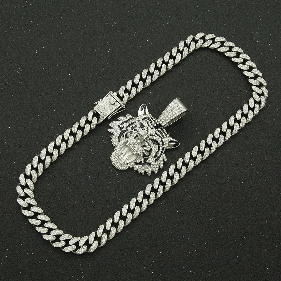 fashion geometric alloy diamond men's pendant necklace - Golden (Tiger Head)-with 5525 Models 50cm Cuban Link Chain