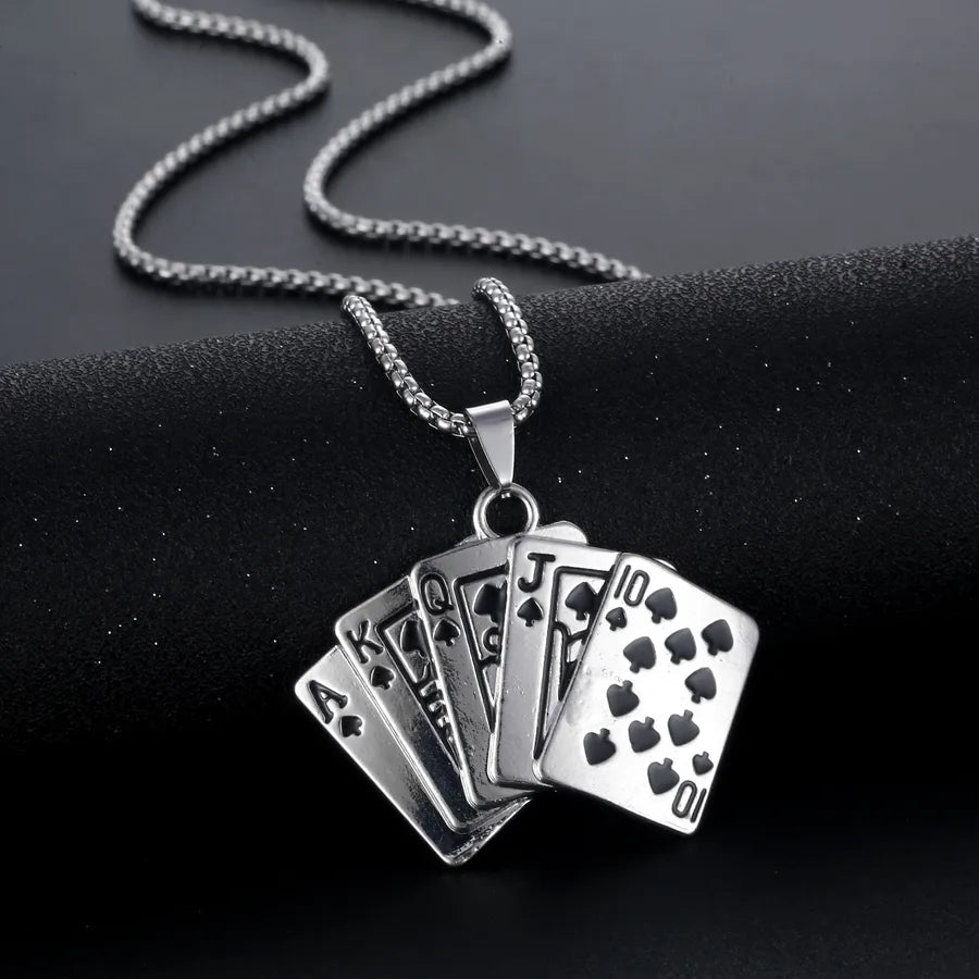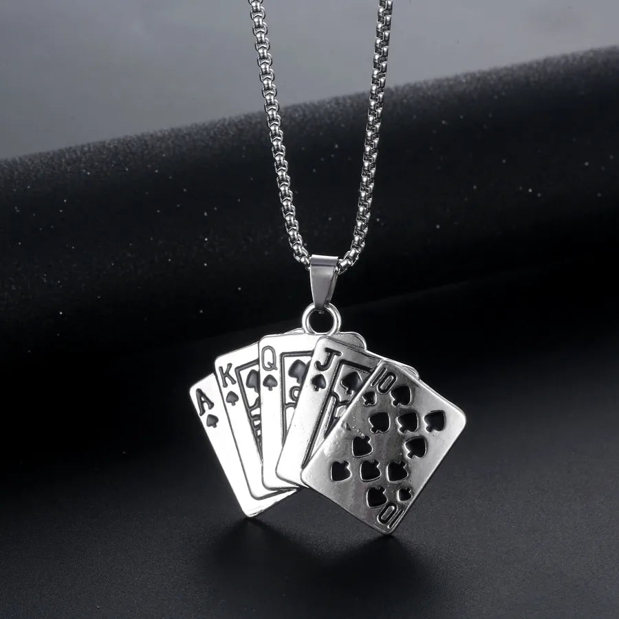 fashion poker titanium steel inlay rhinestones pendant necklace 1 piece - A-225