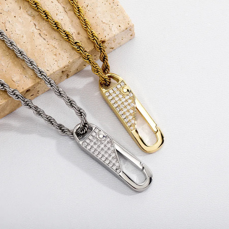 High Quality Detachable Zipper Pulls Pendant Necklaces For Bags And Down Jackets Color Retention Copper Material Geometric Pattern - Golden Not Necklace
