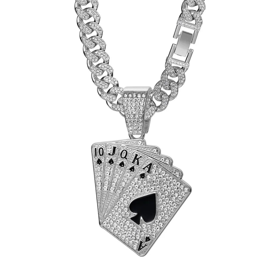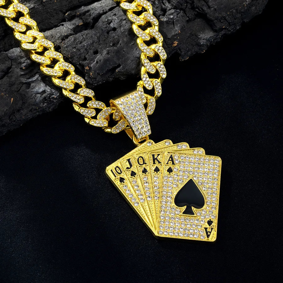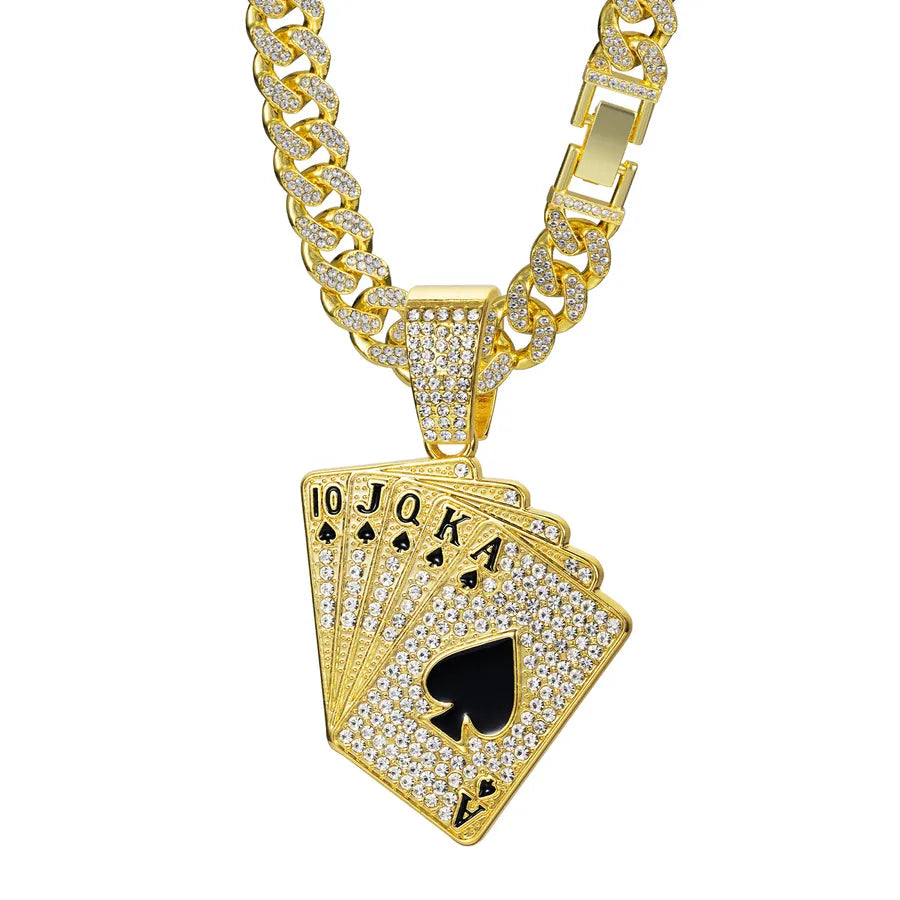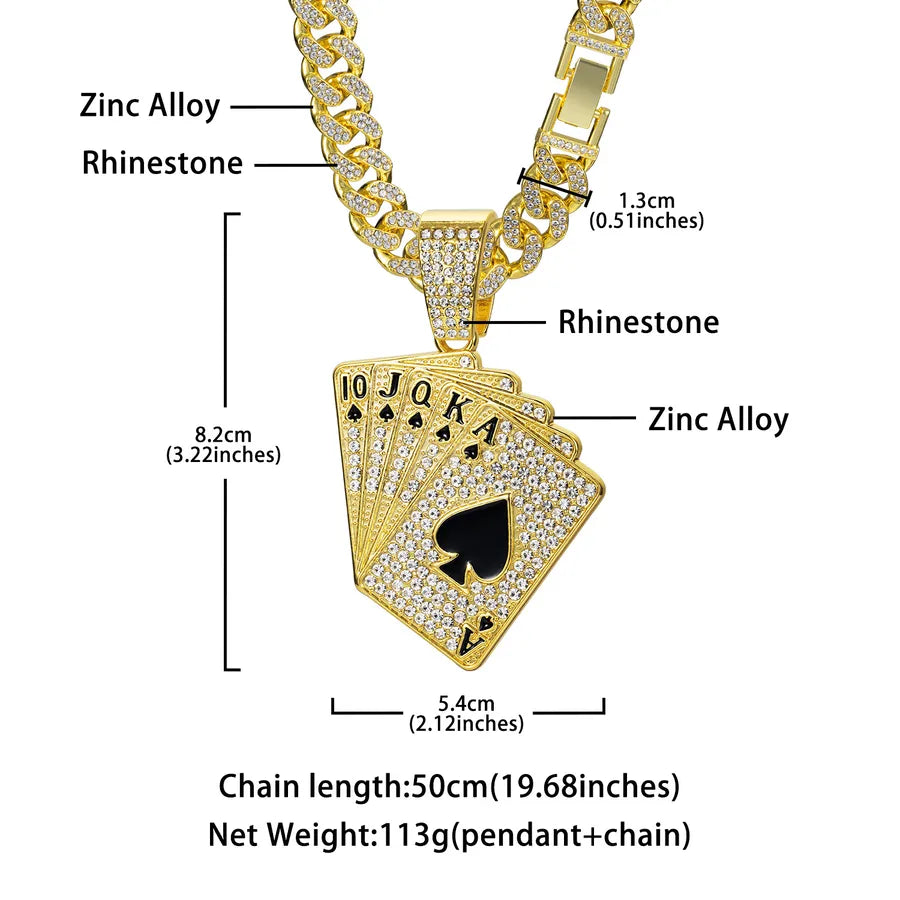 Hip-Hop Letter Alloy Inlay Artificial Diamond Unisex Pendant Necklace - Gold Pendant 50cm Cuban Link Chain/13mm