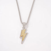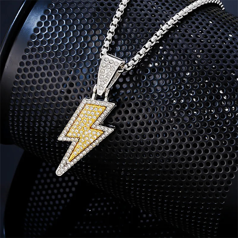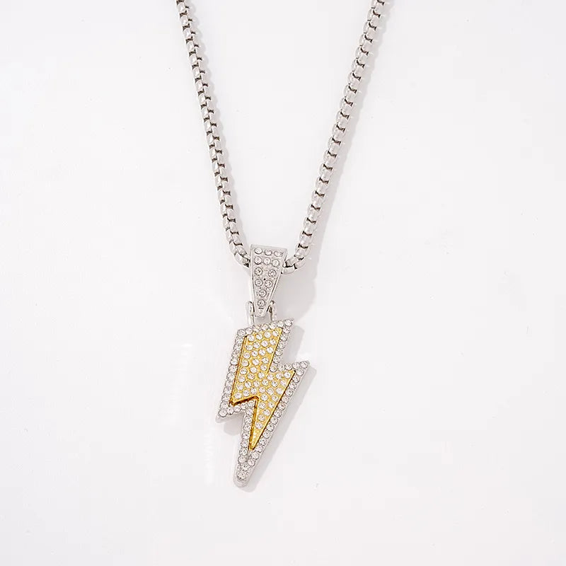 Hip-Hop Rock Lightning 304 Stainless Steel Alloy Inlay Rhinestones Rhodium Plated Unisex Pendant Necklace - N00551-1