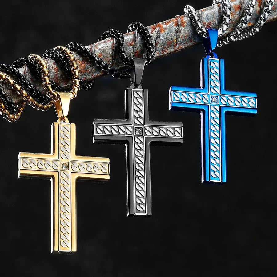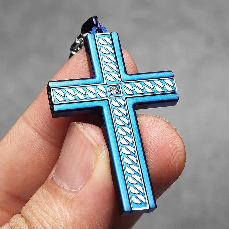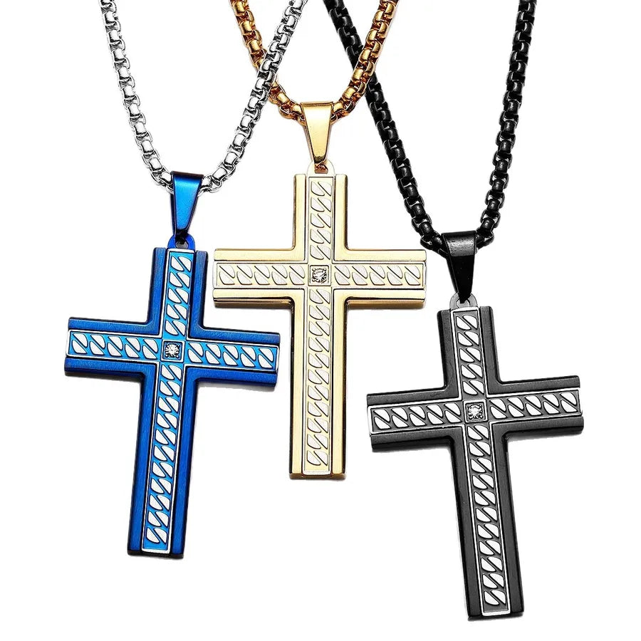 New Titanium Steel Corrosion Chain Cross Necklace Original Stainless Steel Three Dimensional Oblique Edge Embedded Stone Pendant Unisex Geometric Pattern Ins Style Polished Craft
