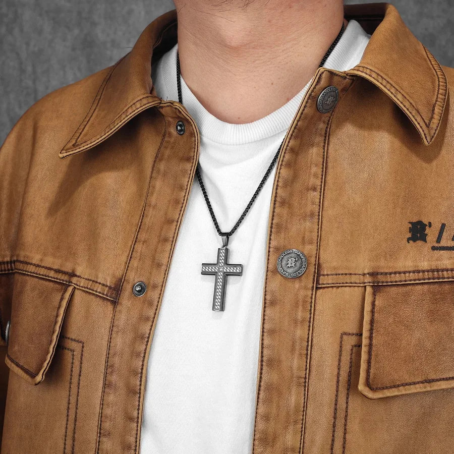 New Titanium Steel Corrosion Chain Cross Necklace Original Stainless Steel Three Dimensional Oblique Edge Embedded Stone Pendant Unisex Geometric Pattern Ins Style Polished Craft - Black Pendant