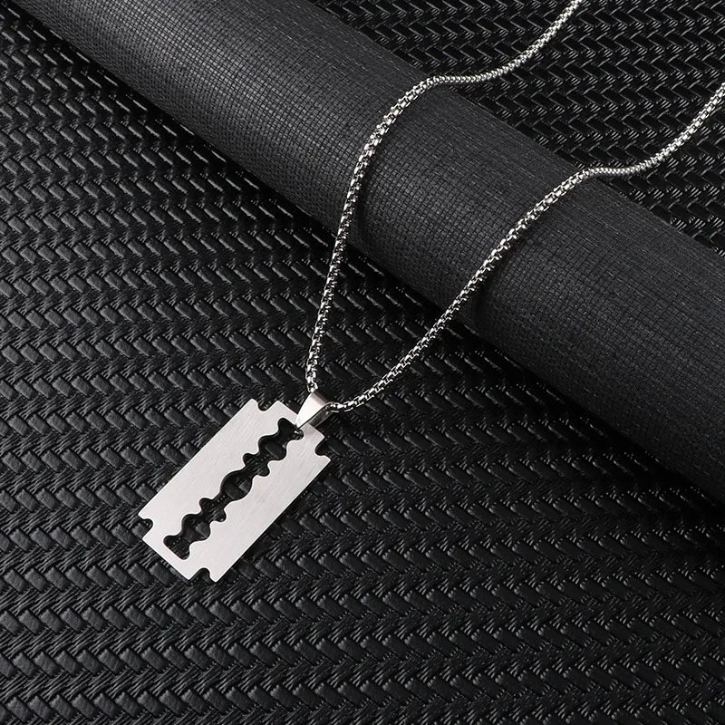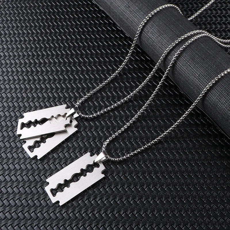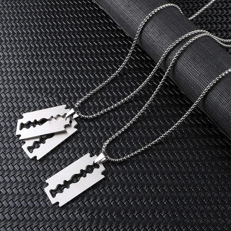punk streetwear blade titanium steel polishing men's pendant necklace
