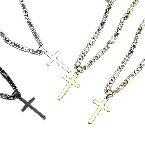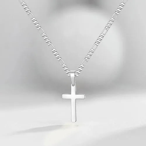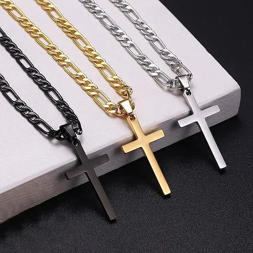 Stainless Steel Cuban Link Cross Pendant Necklace Simple Fashion Couple Jewelry Titanium Steel Geometric Pattern Ins Style Unisex - Steel Pendant Chain