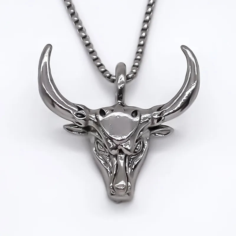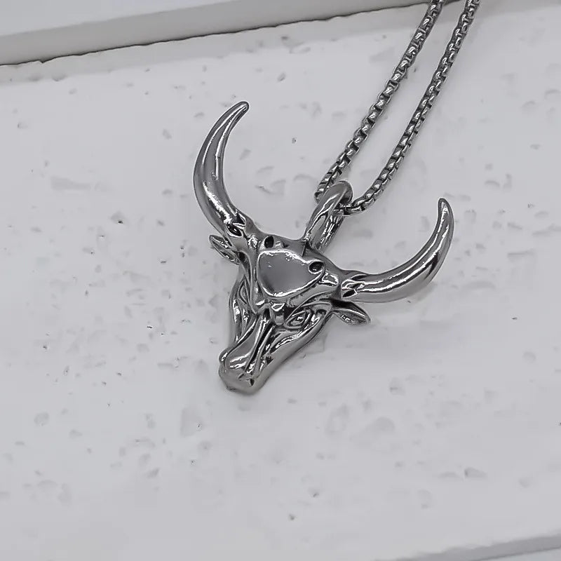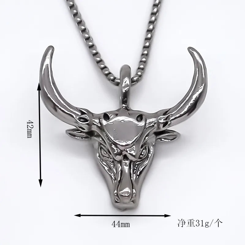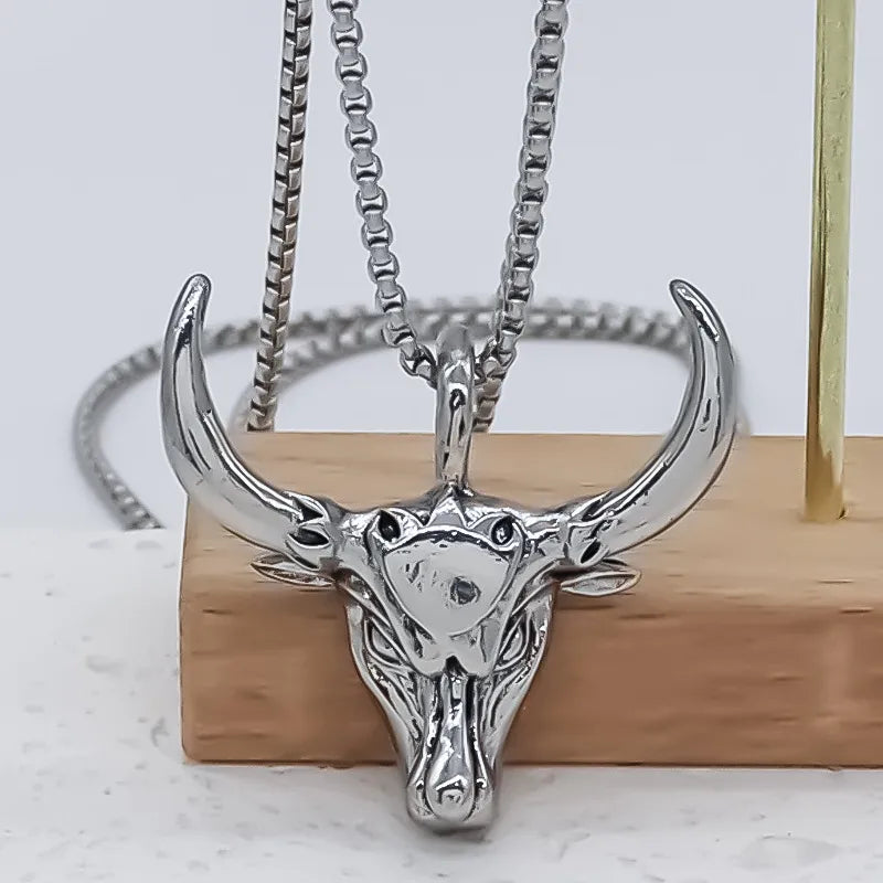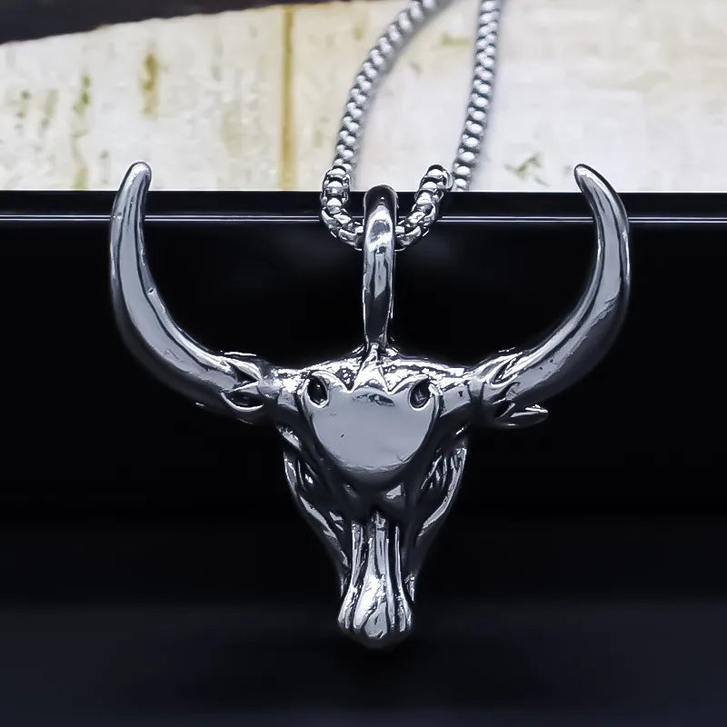 Street Style Alloy Bull Head Pendant Necklace Unisex Fashion Jewelry Geometric Pattern Trendy Accessory For Men And Women - Silver