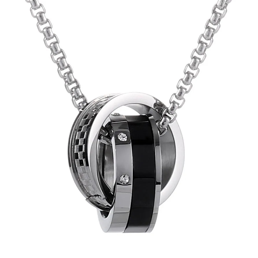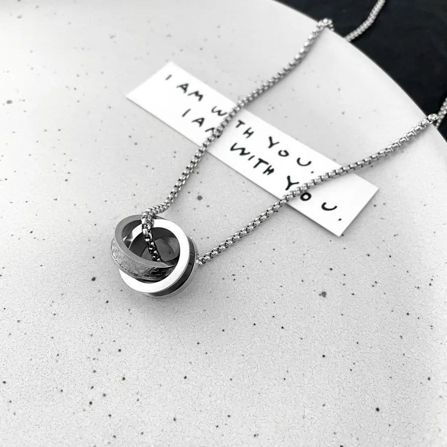 Street Style Titanium Steel Pendant Unisex Double Ring Buckle Necklace Versatile Personality Accessory High-End Feeling Jewelry