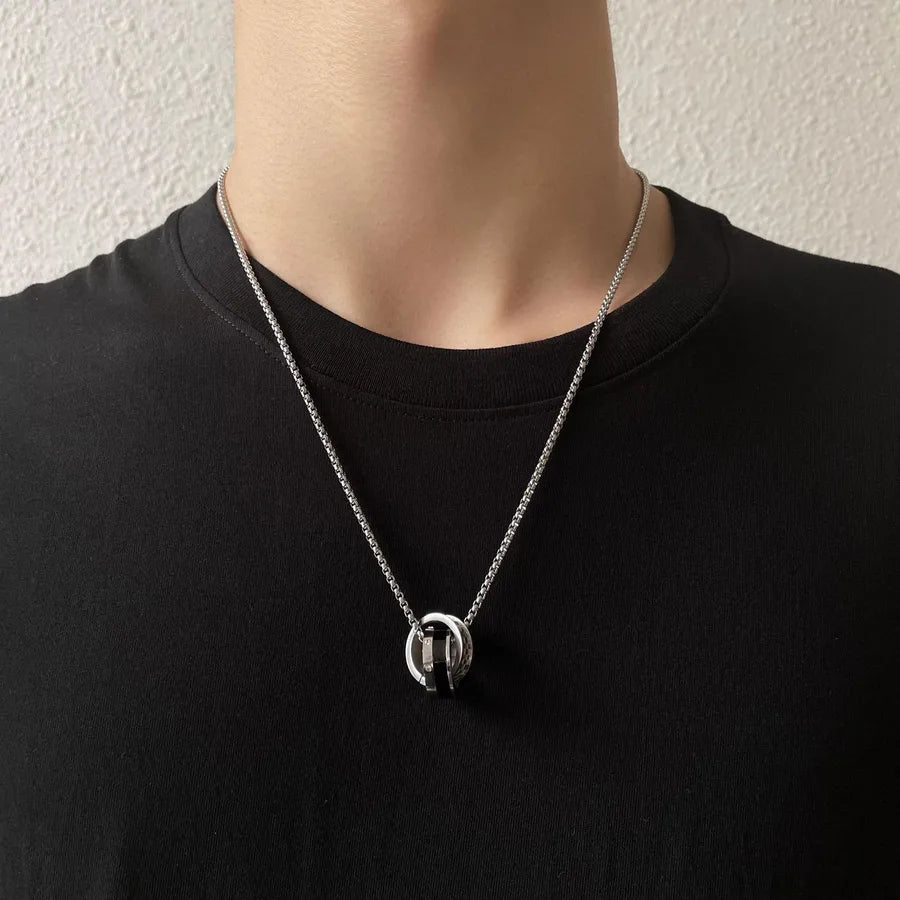 Street Style Titanium Steel Pendant Unisex Double Ring Buckle Necklace Versatile Personality Accessory High-End Feeling Jewelry - Pendant chain