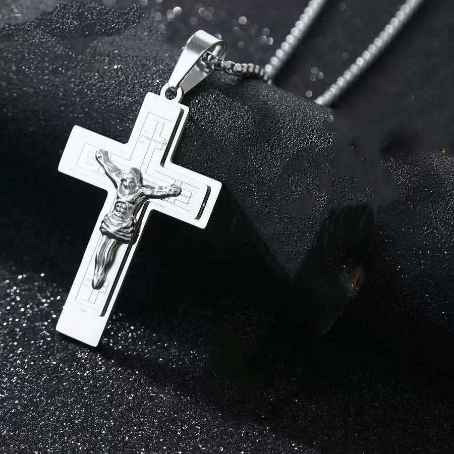 Trendy Stainless Steel Men's Pendant Necklace Non-fading Personalized Geometry Pattern Polished Titanium Jewelry Accessory - Steel Pendant + Pearl Chain