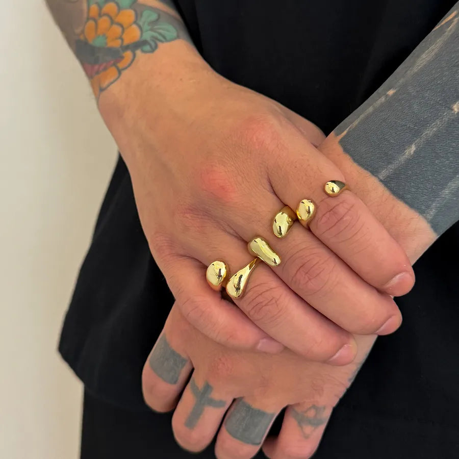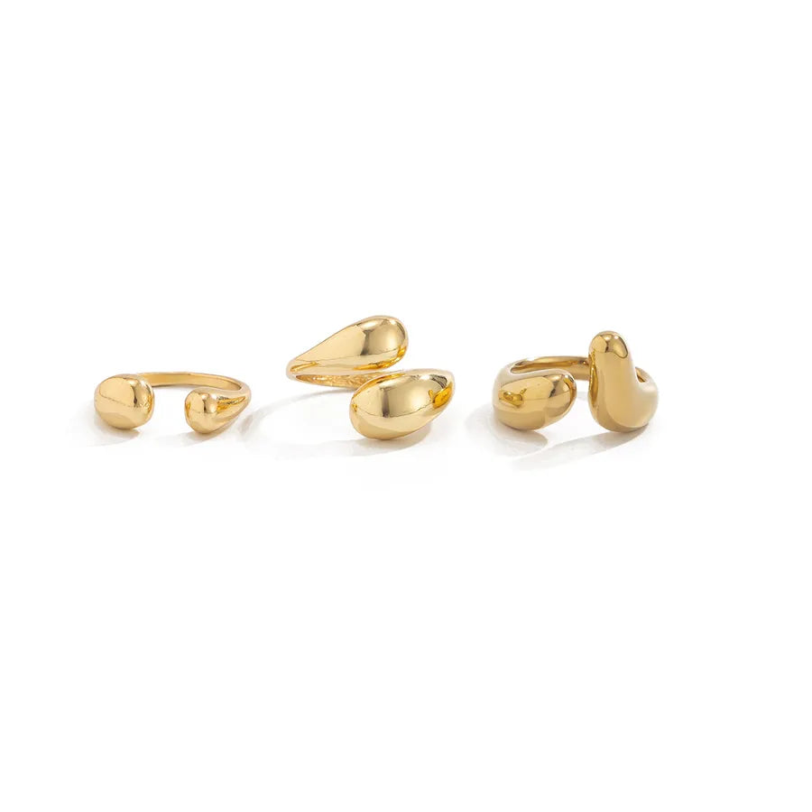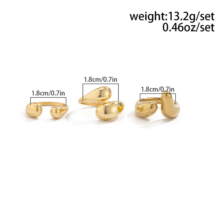 Men's Three-Piece Set Alloy Ring Waterdrop Shape Geometric Pattern Minimalist Versatile Stylish European Handmade Jewelry - Light Gold 06272