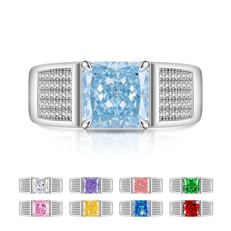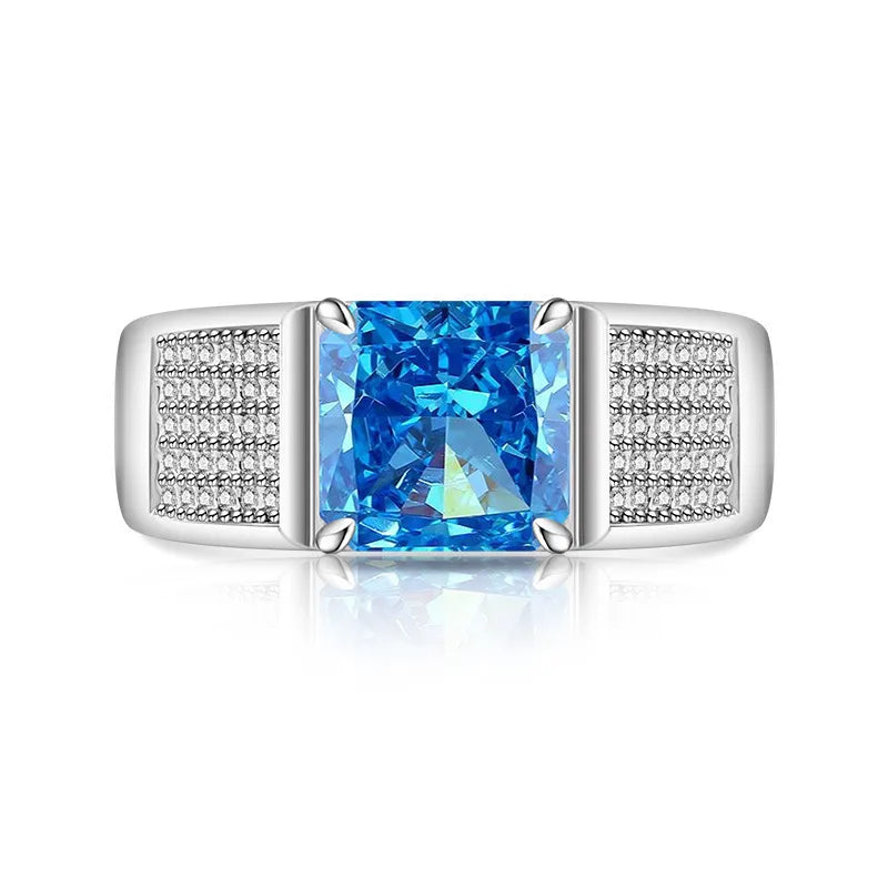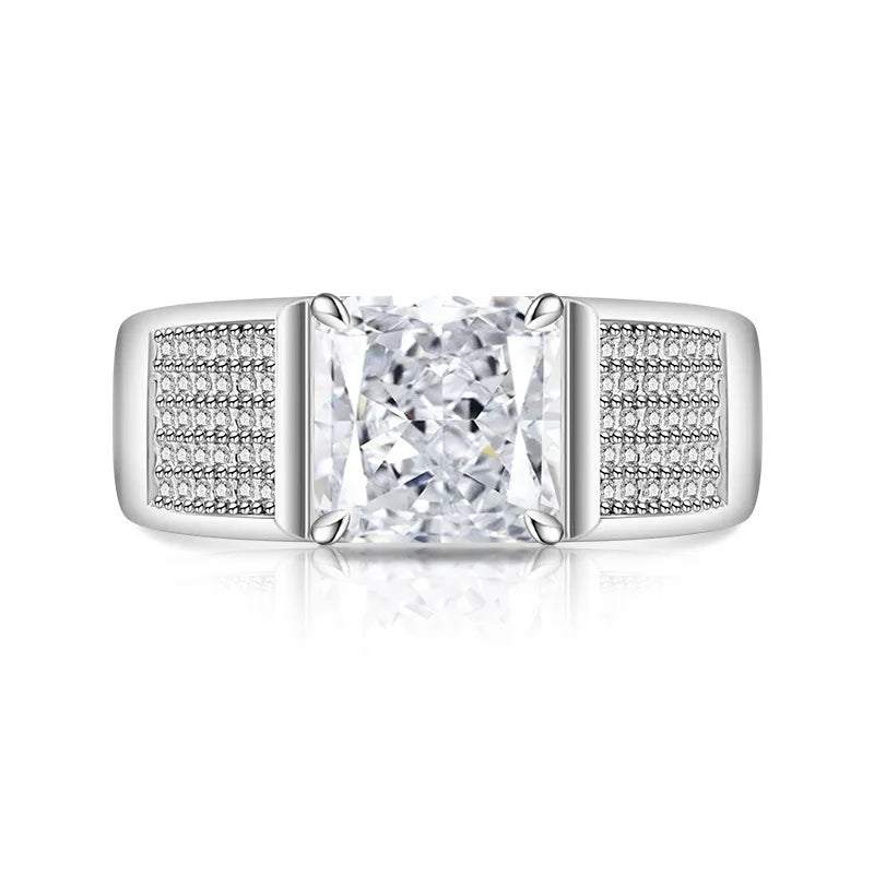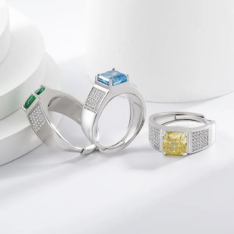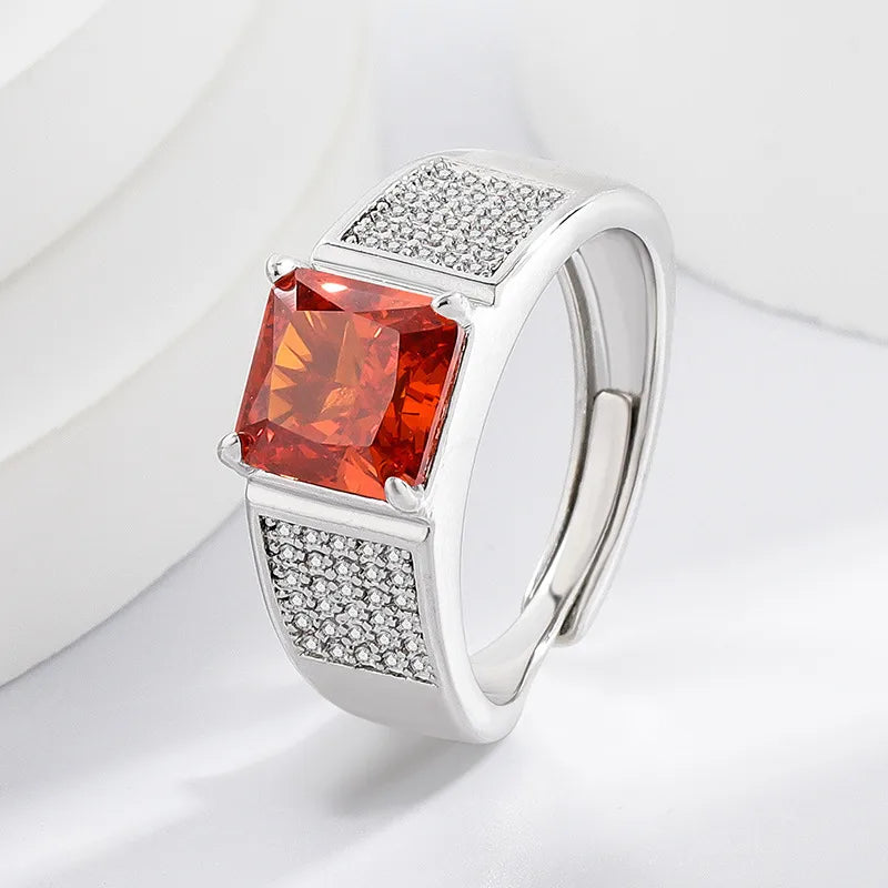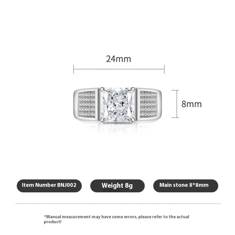 Business Men's High Carbon Diamond Ring Ice Flower Cut Hot Sale Live Broadcast Jewelry Luxury Style Copper Material - Adjustable Opening / (Super White)