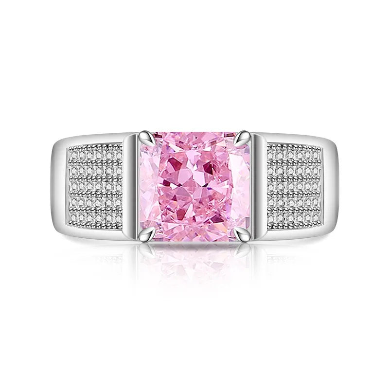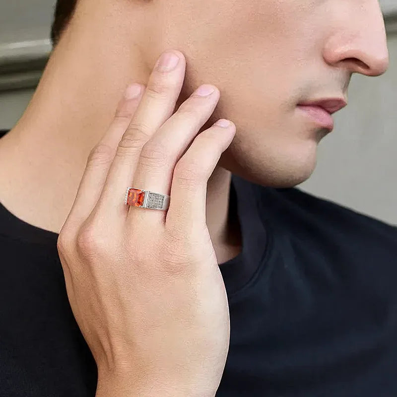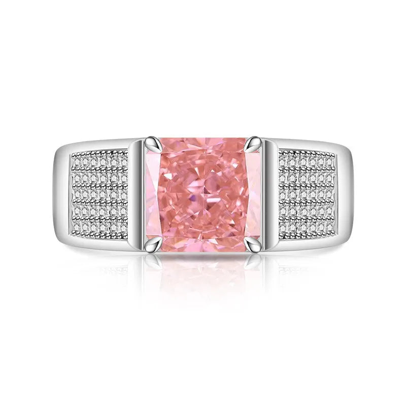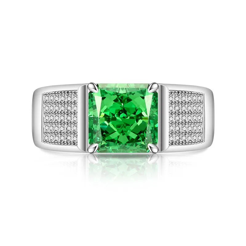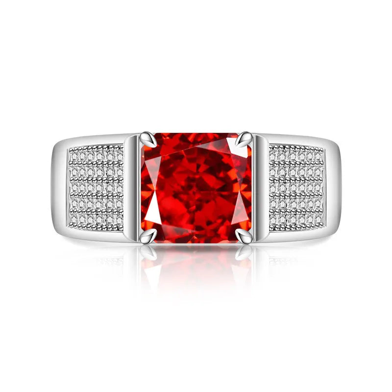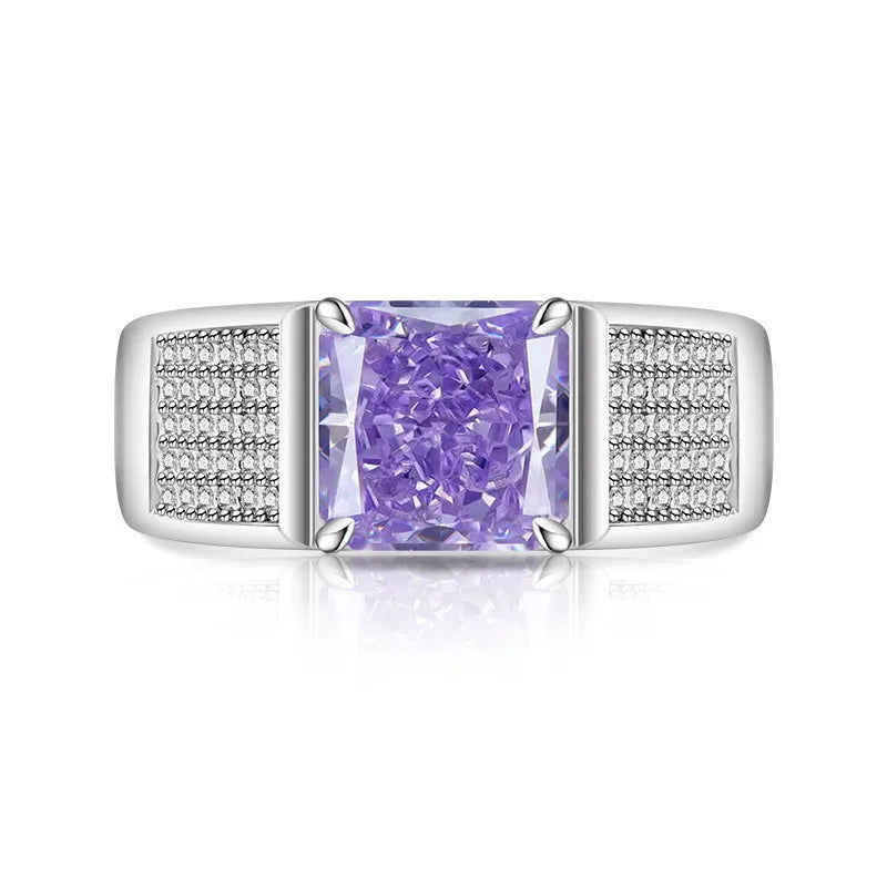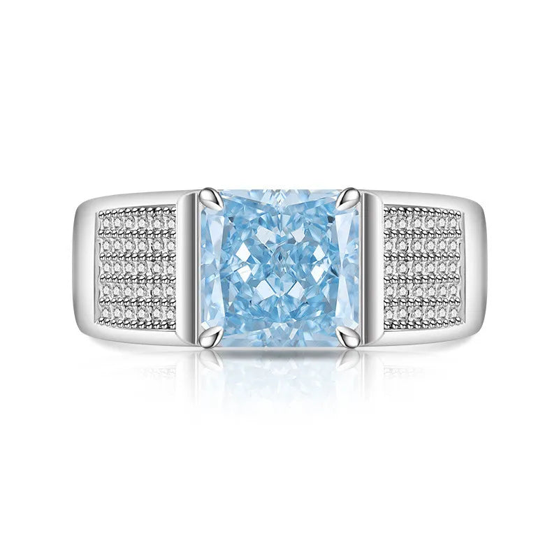 Business Men's High Carbon Diamond Ring Ice Flower Cut Hot Sale Live Broadcast Jewelry Luxury Style Copper Material - Adjustable Opening / (Super White)