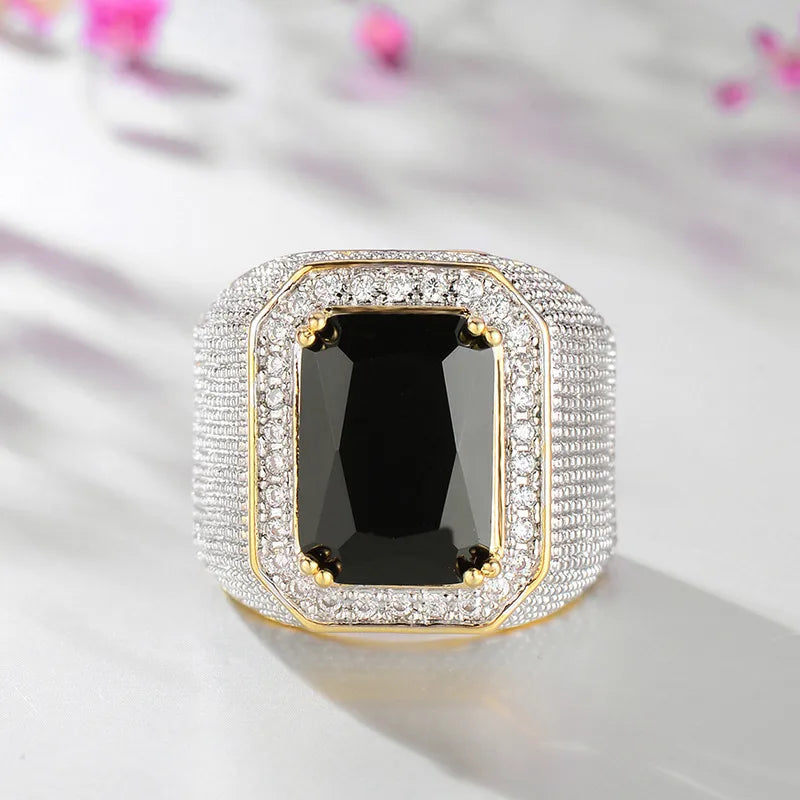 Cao Shi inlaid zircon hip hop domineering square men's ring fashion retro versatile trendy men's ring source manufacturer - No. 6 / Q310 Blue