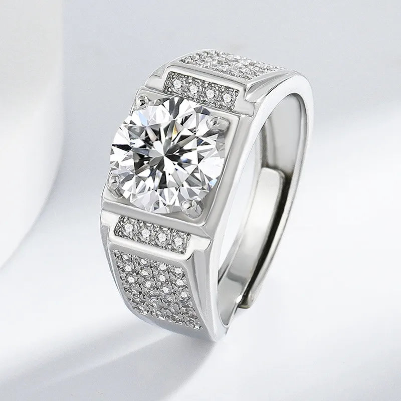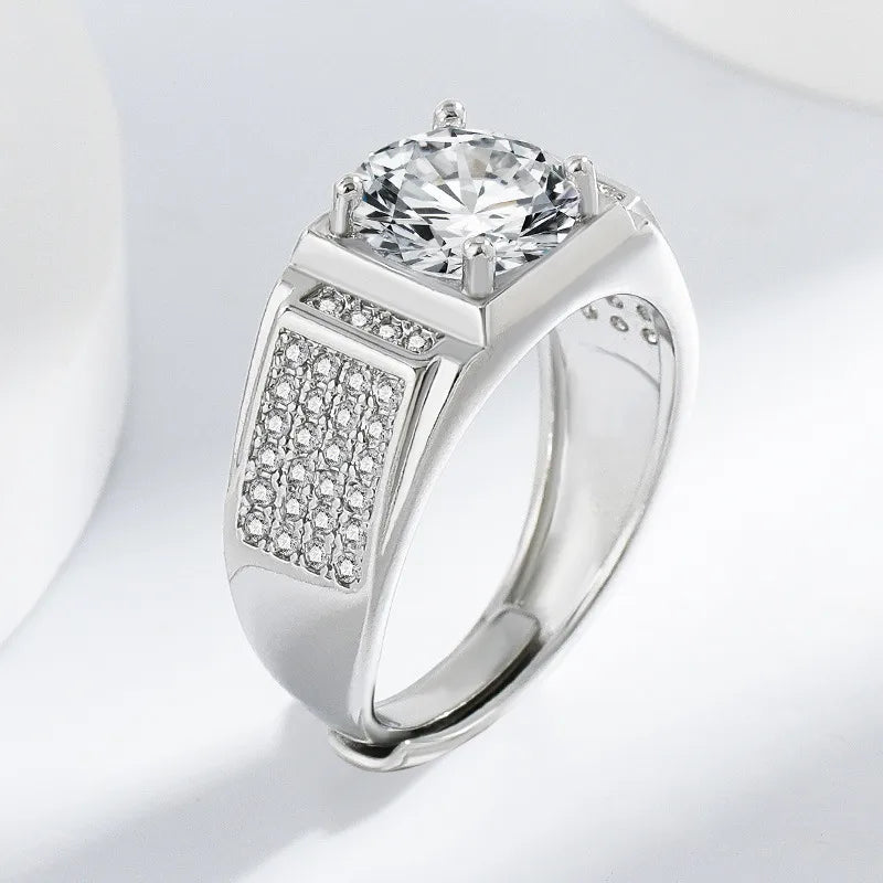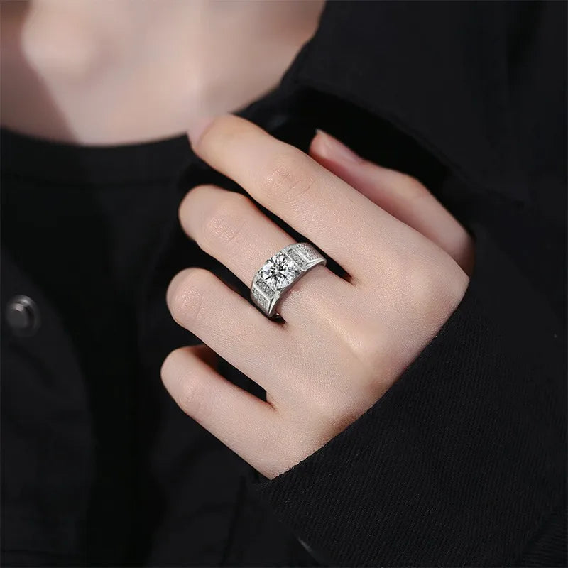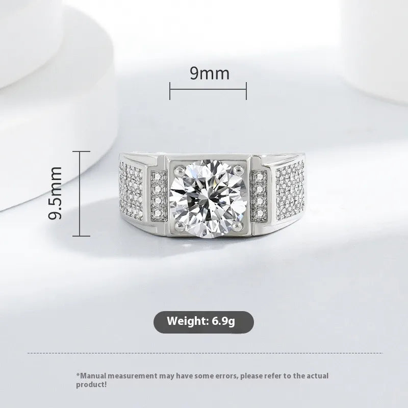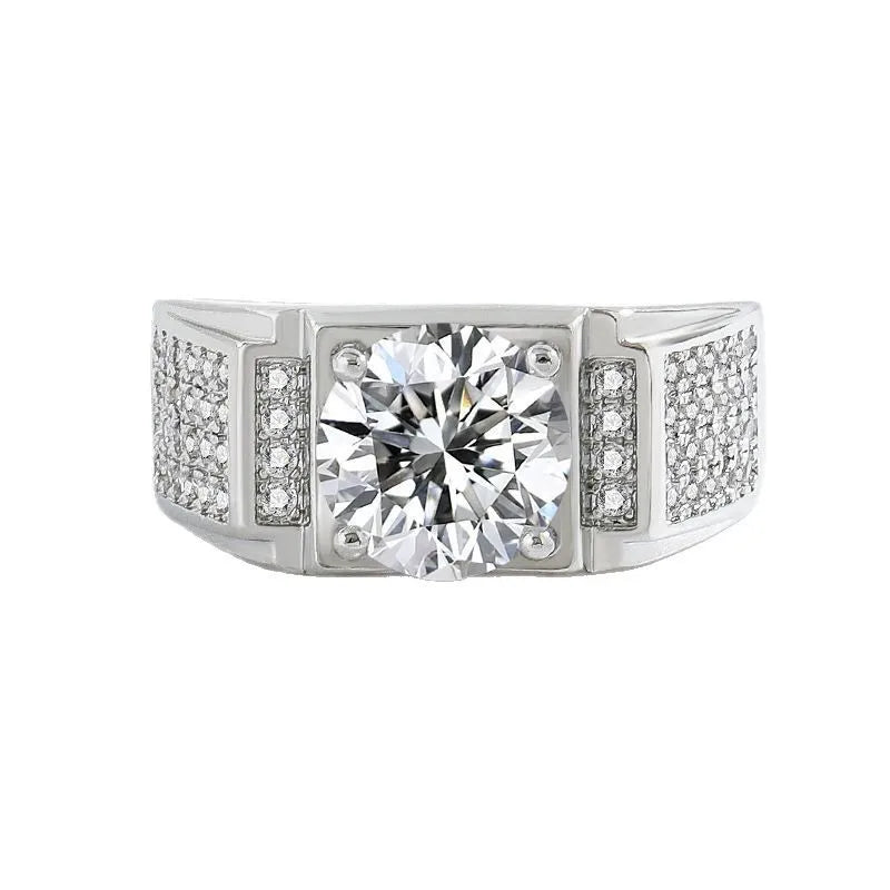 Classic High Carbon Diamond 3 Carat Fashionable Men's Ring Full Of Sparkling Stones Stylish Accessory For Grooming And Parties - White Gold Color (3 Karat)