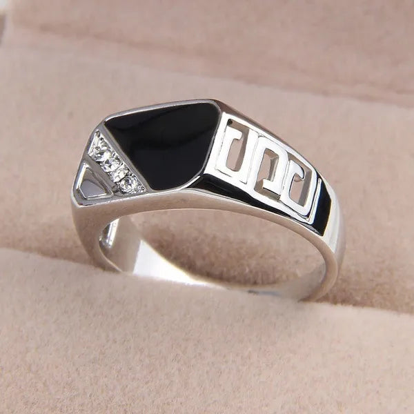 classic style geometric alloy plating inlay artificial gemstones couple rings - No. 5 / Silver