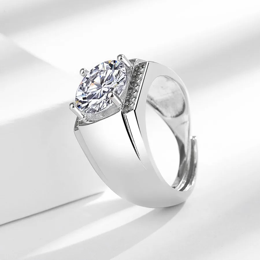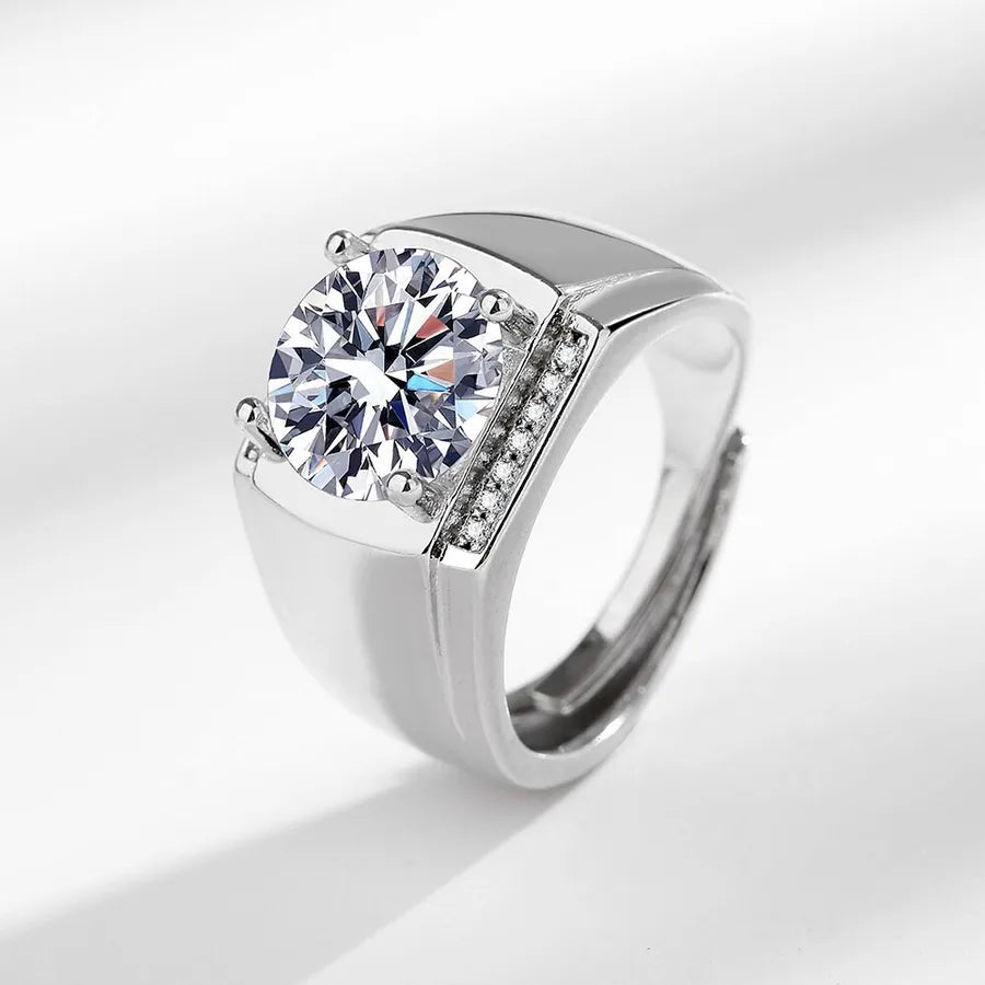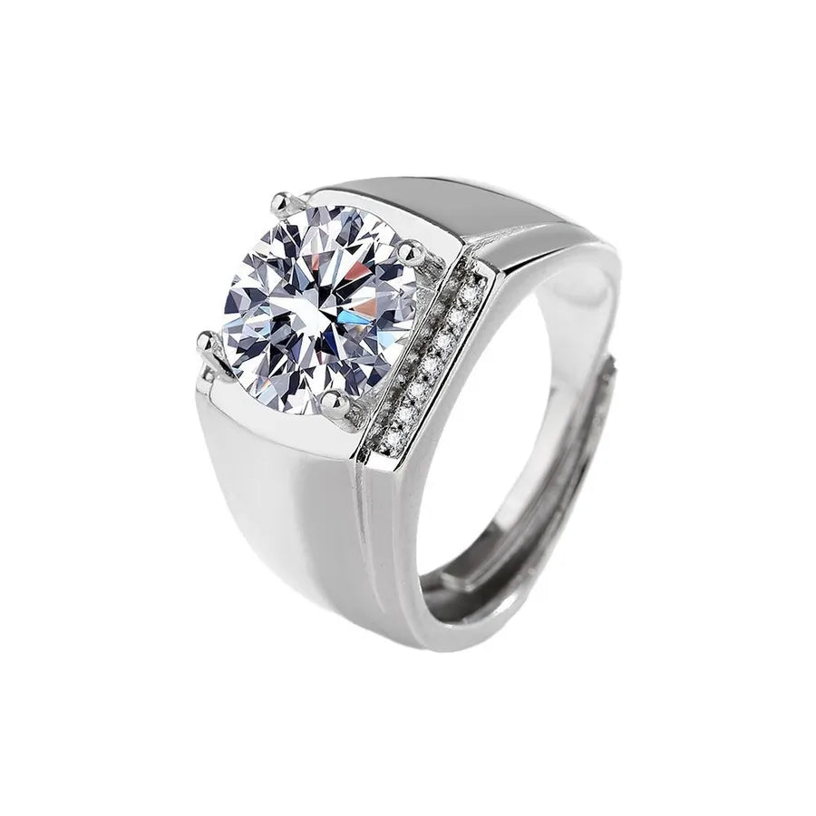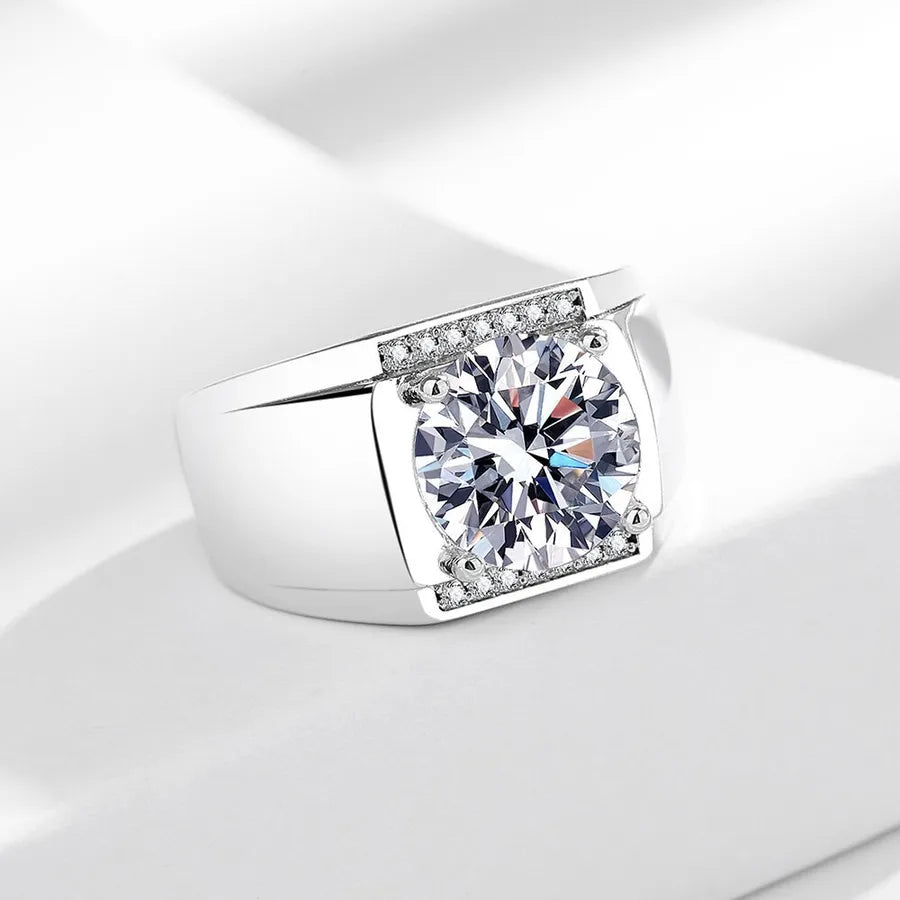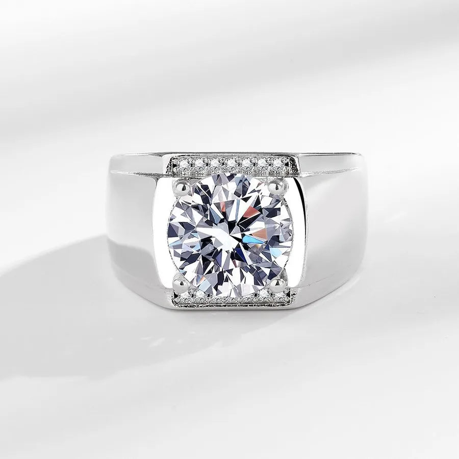 Dominant 4 Carat Moissanite Ring For Men White Gold Plated Jewelry Geometric Pattern Round Design Live Broadcast Hot Selling - White Gold Color