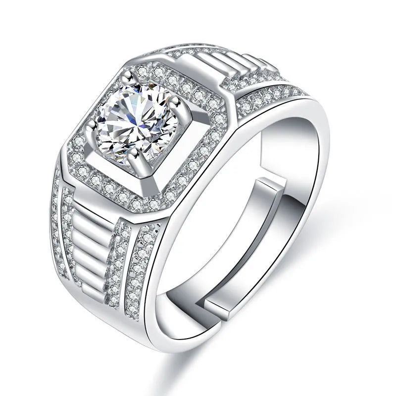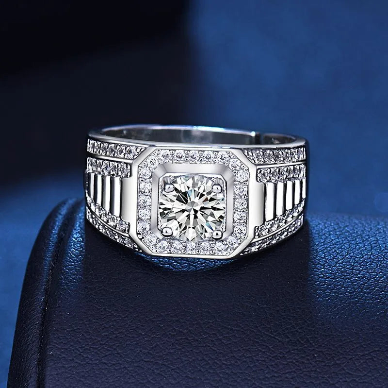 Europe and the United States domineering personality 1 karat Mosan Diamond big men's ring fashion atmosphere men's business Ring Ring wholesale - Opening adjustable / J296