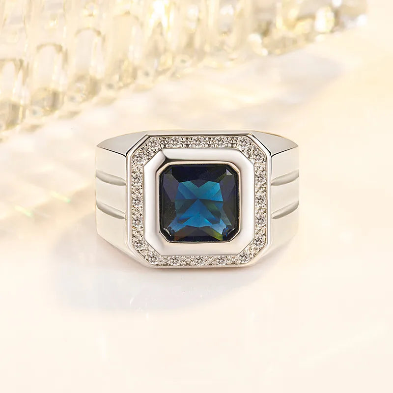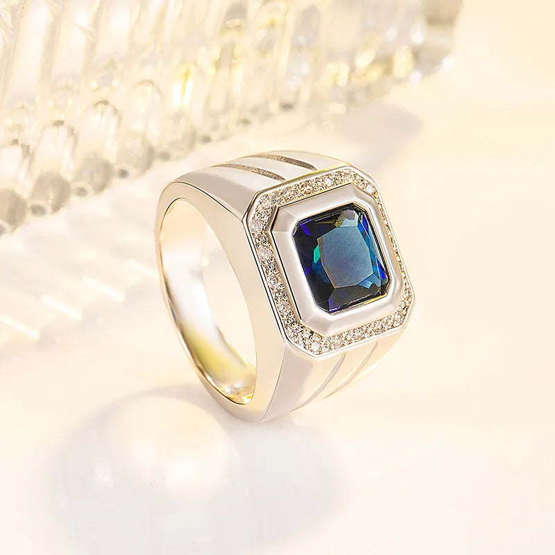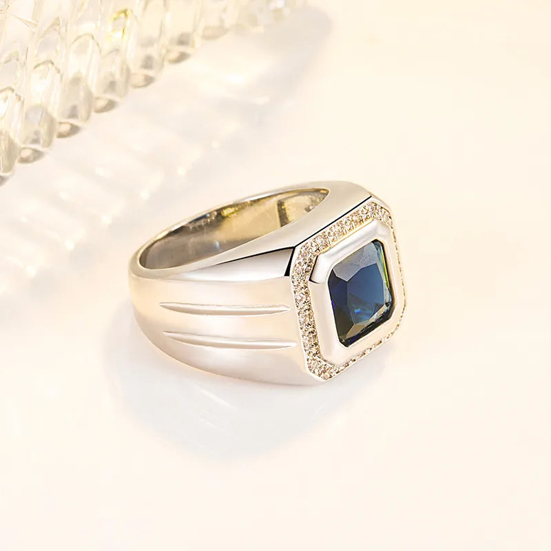 fashion geometric copper rings inlay zircon copper rings 1 piece - No. 6 / Blue Crystal Ring [White Gold Color]]