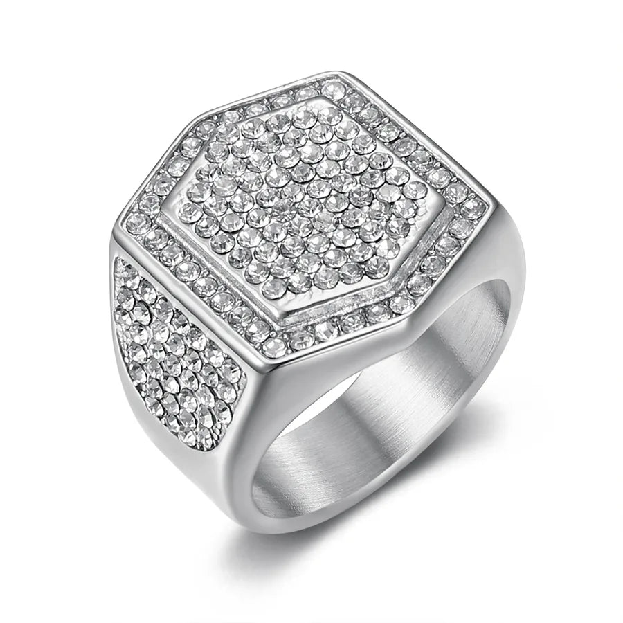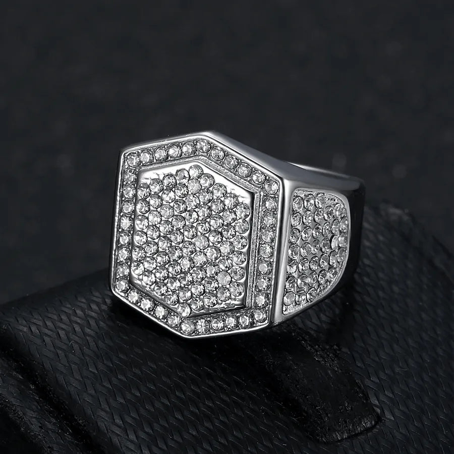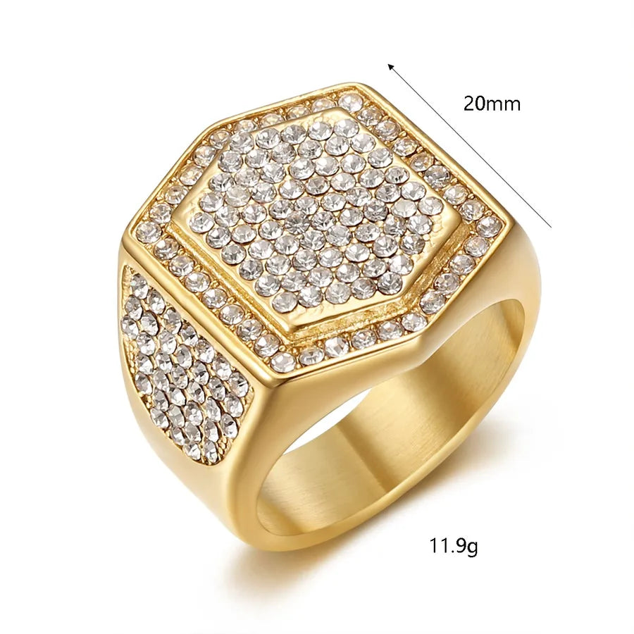 Hip-Hop Hexagon Titanium Steel Plating Inlay Rhinestones 18K Gold Plated Men's Rings