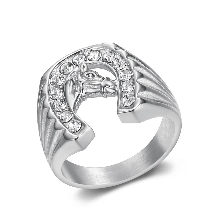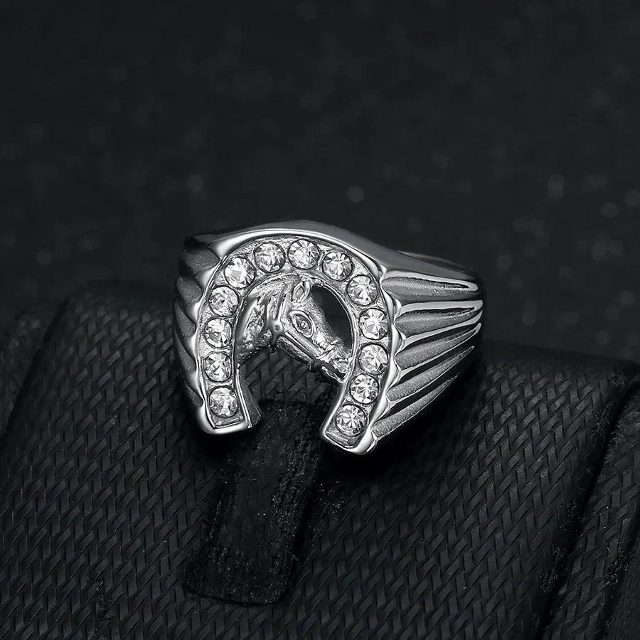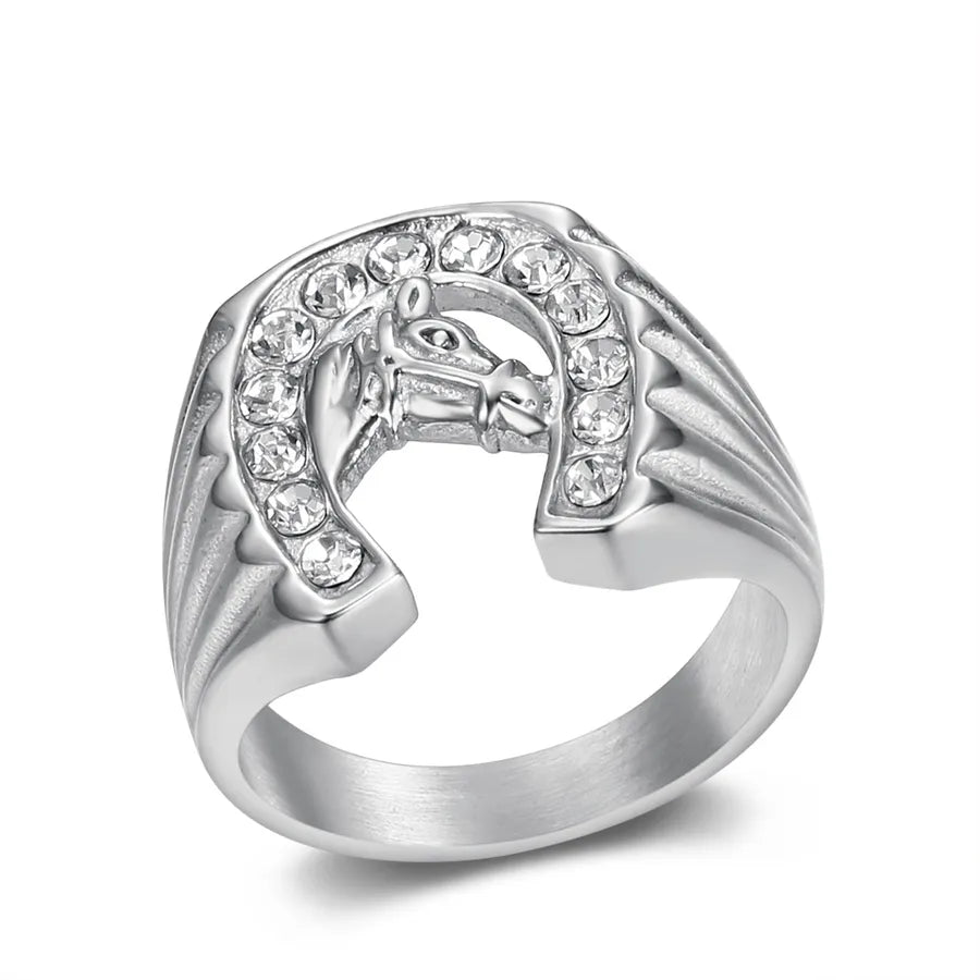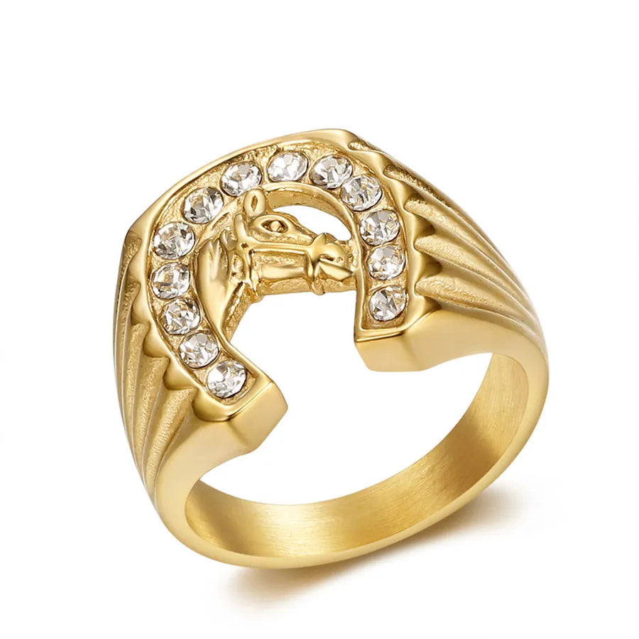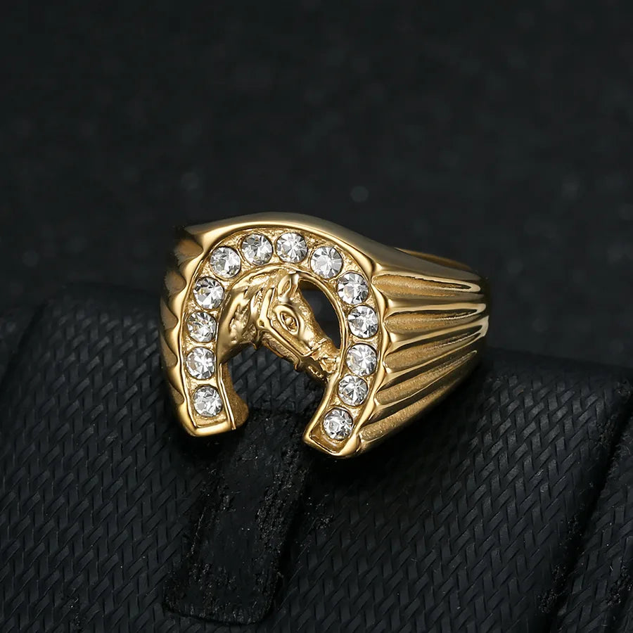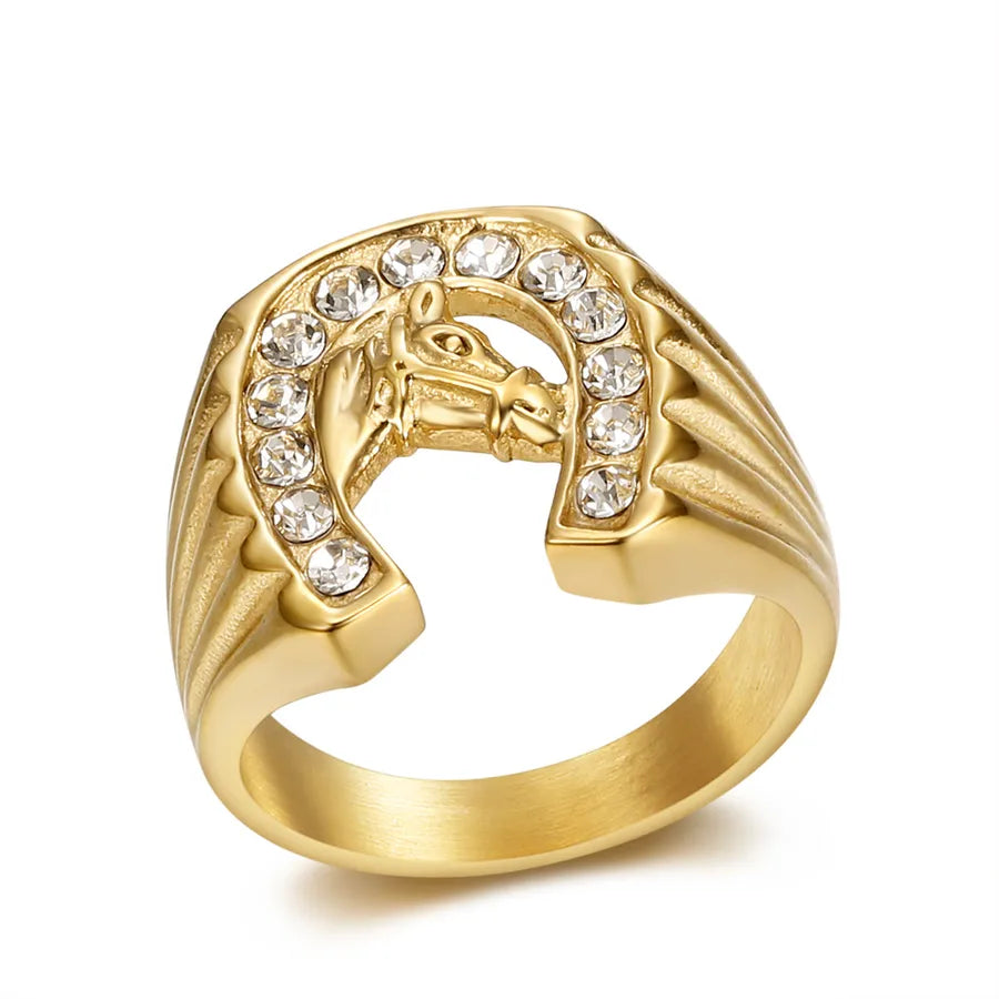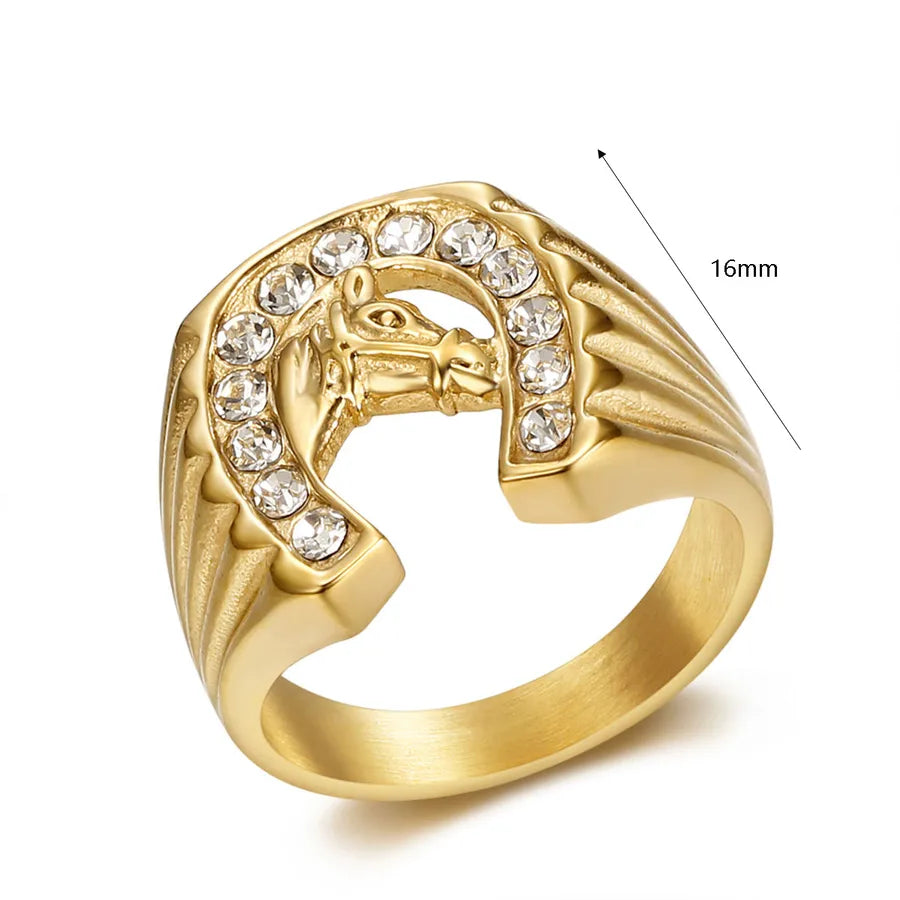Hip-Hop Horse Titanium Steel Plating Inlay Rhinestones 18K Gold Plated Men's Rings - 7 / Gold [US Size]]