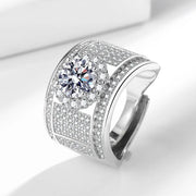 Luxury Wide Men's Ring Full Of Diamonds S925 Silver Plated Geometric Pattern Live Broadcast Hot Selling Style - White Gold Color (Main Stone 2 Karat 8mm)