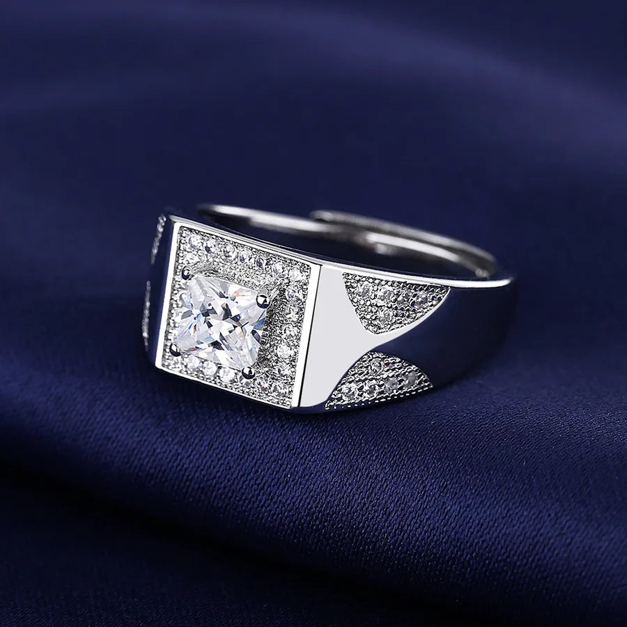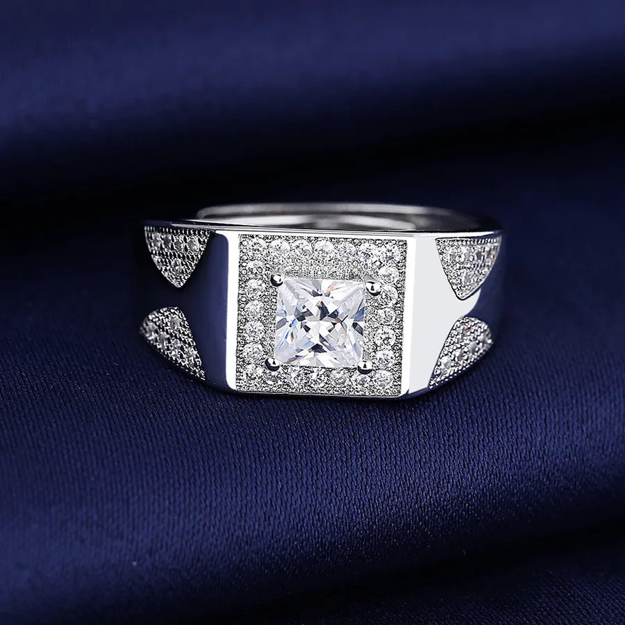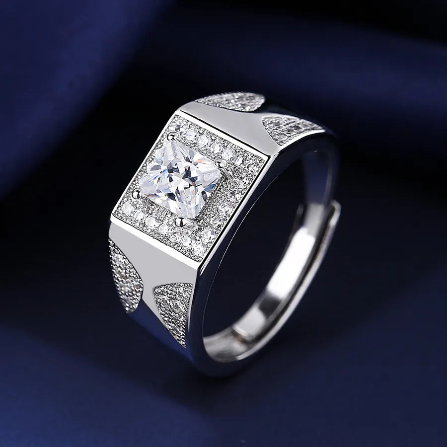 Men's Micro-Set Wedding Ring Moissanite Ring Style Live Broadcast Diamond Engagement Ring For Men - Adjustable Opening / White Gold Color 1 Karat