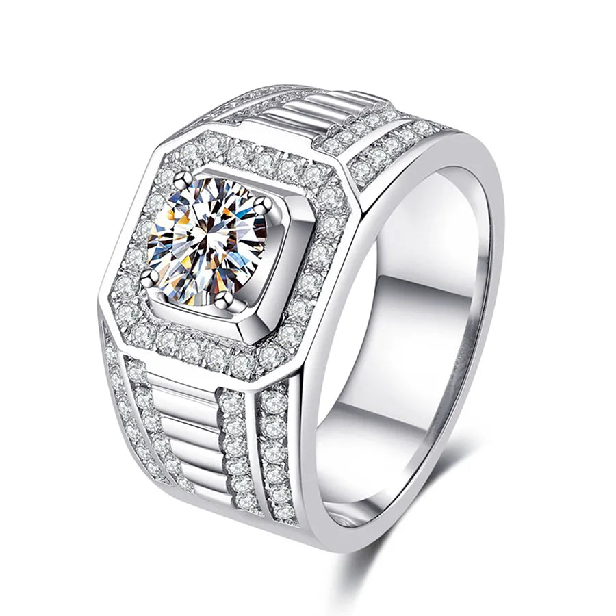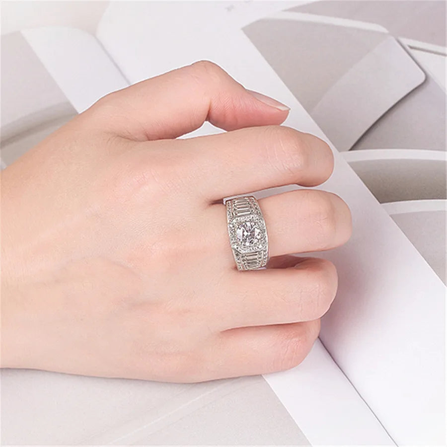 New Hot Sale Men's Wedding Ring Style Accessory Fashionable Copper Material Crown Pattern Neutral Style - Adjustable Opening / White Diamond [White Copper Plated Platinum]]
