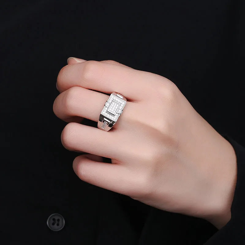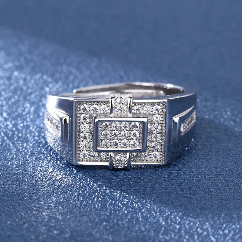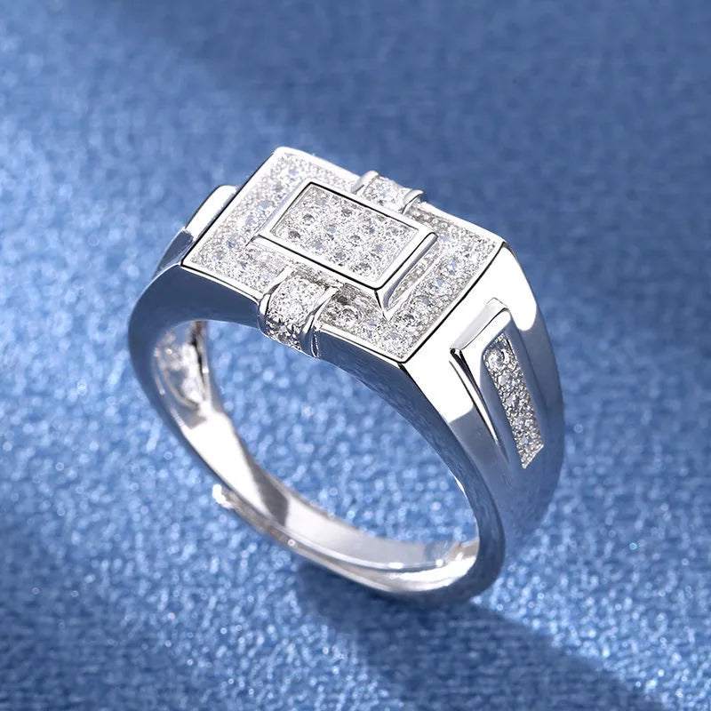 New New Live Broadcast Men's Ring Accessories Diamond Engagement Rings Men's Jewelry Processing Geometric Pattern - Adjustable Opening / Platinum