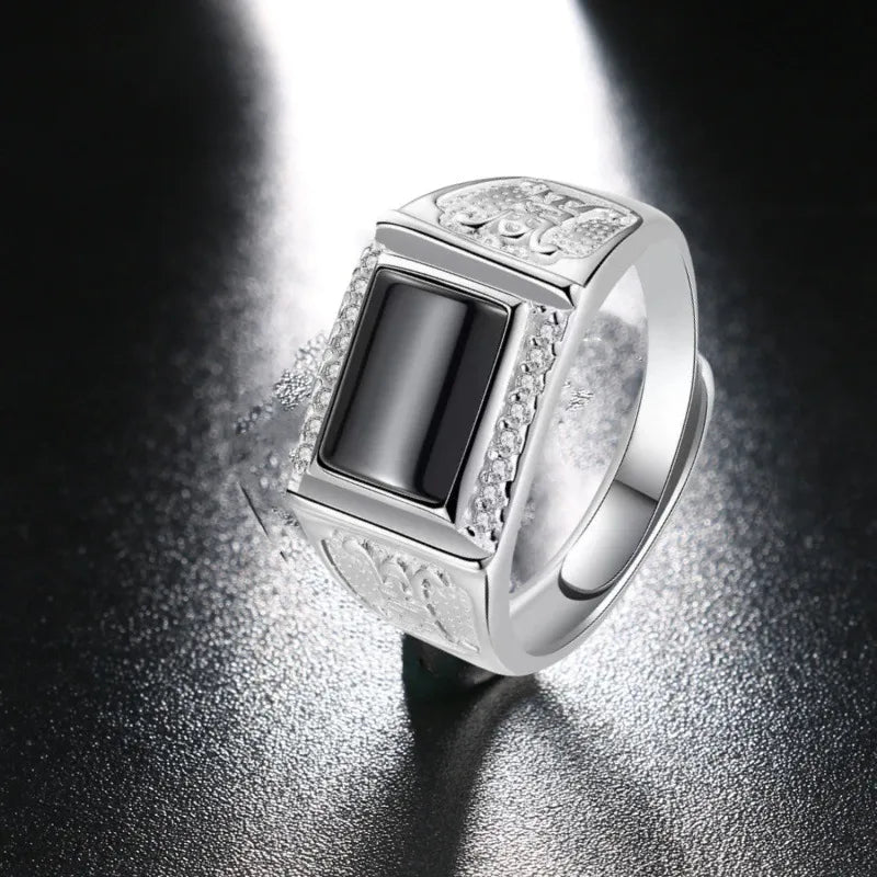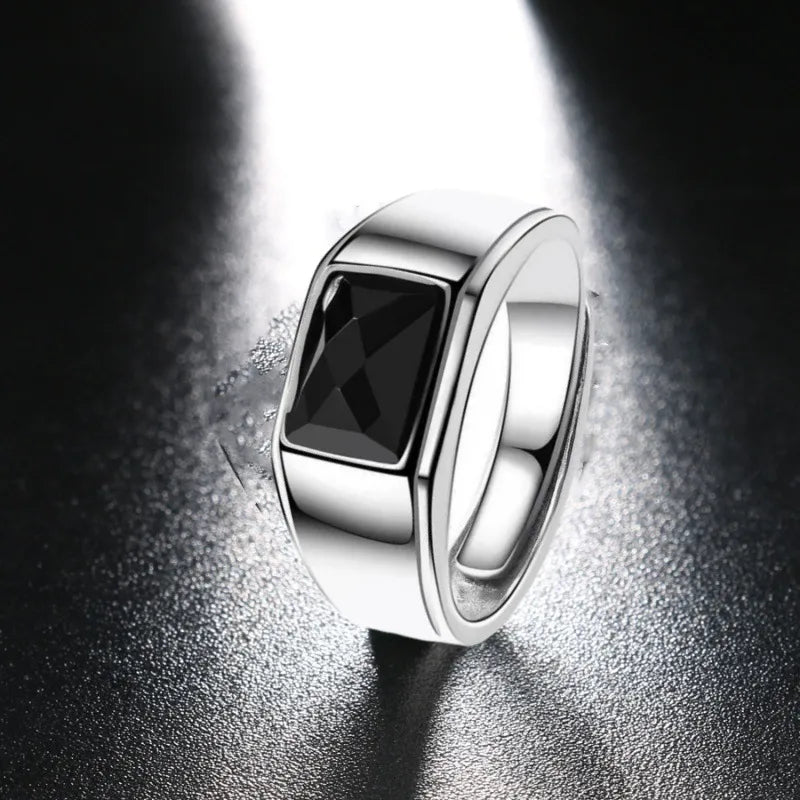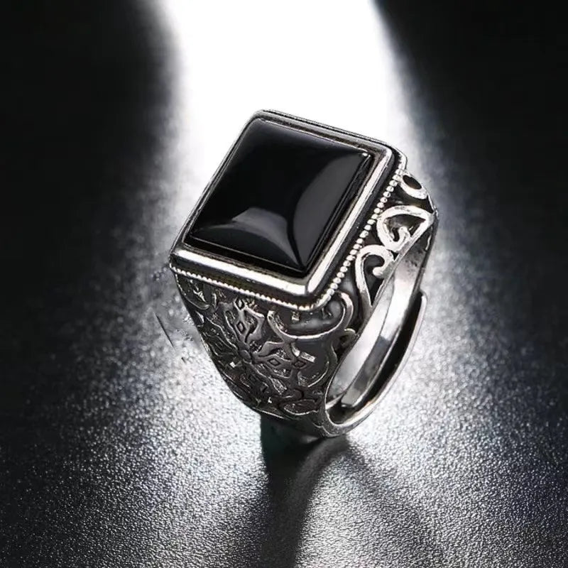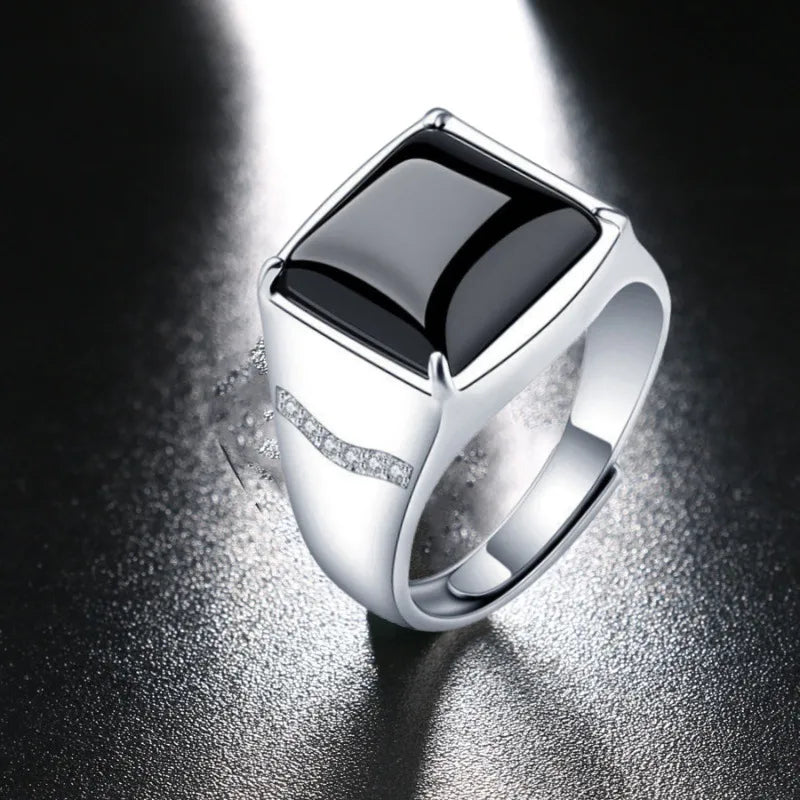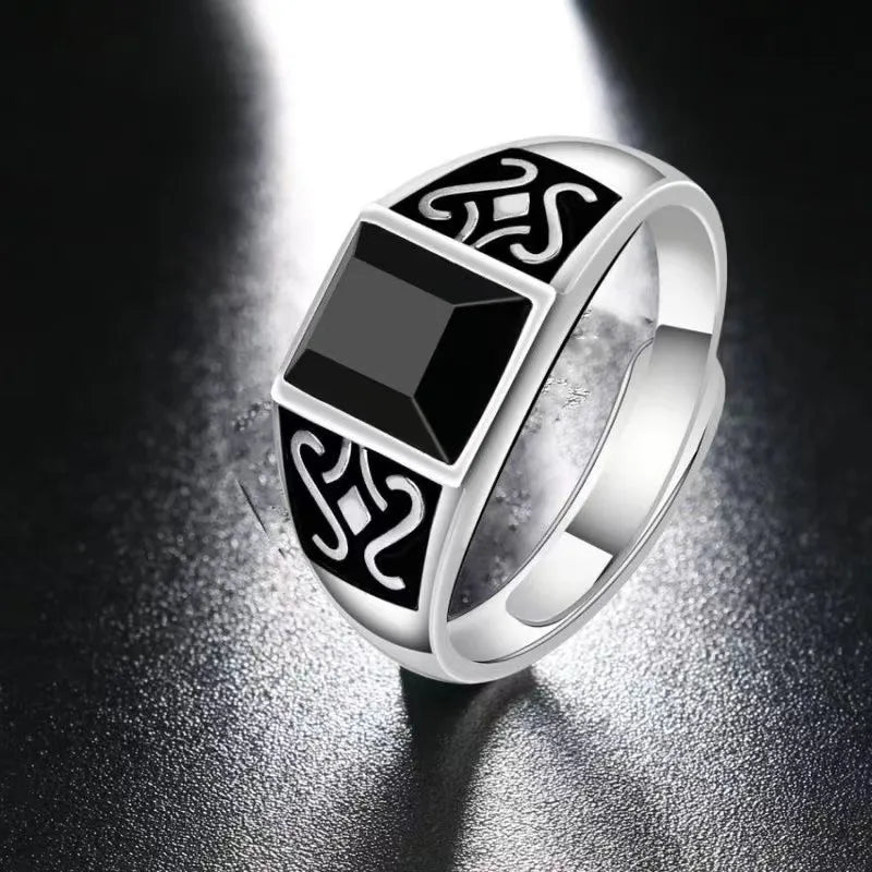 Noble atmosphere domineering imitation obsidian ring index finger trendy men's fashion opening wide version black diamond ring ring ring live mouth - Adjustable opening / [style a] imitation obsidian ring