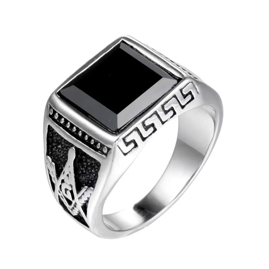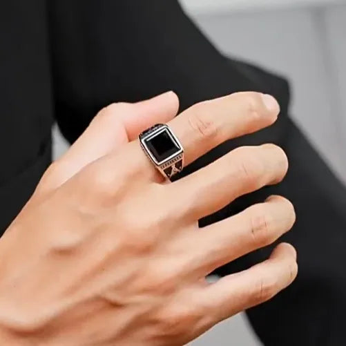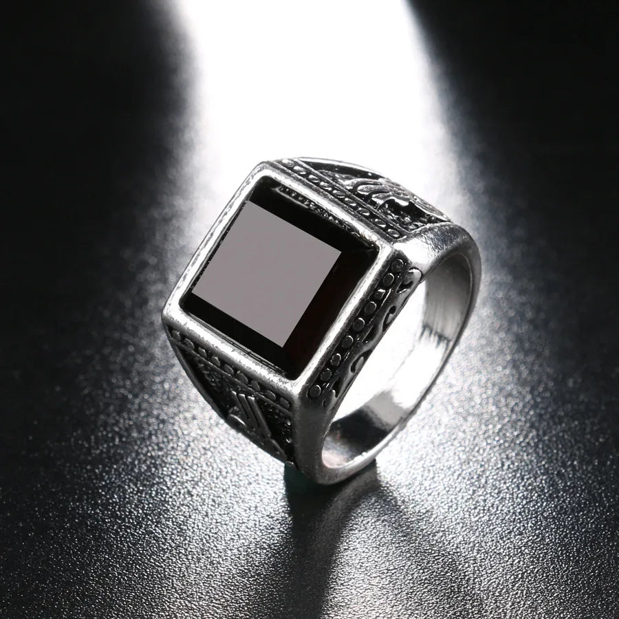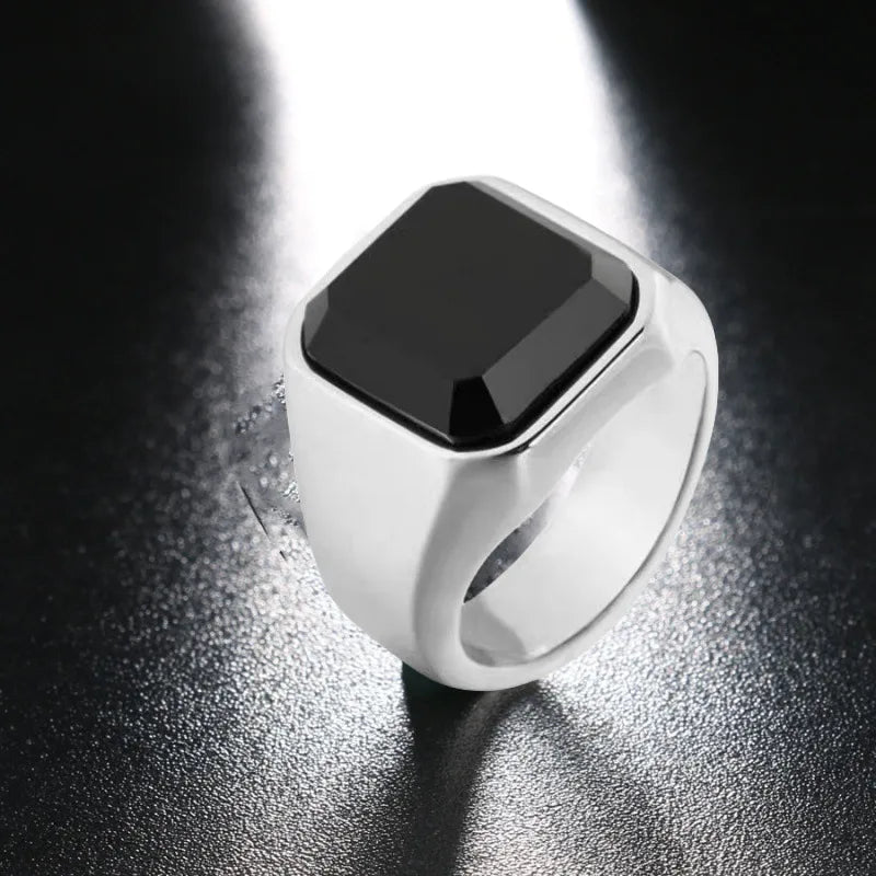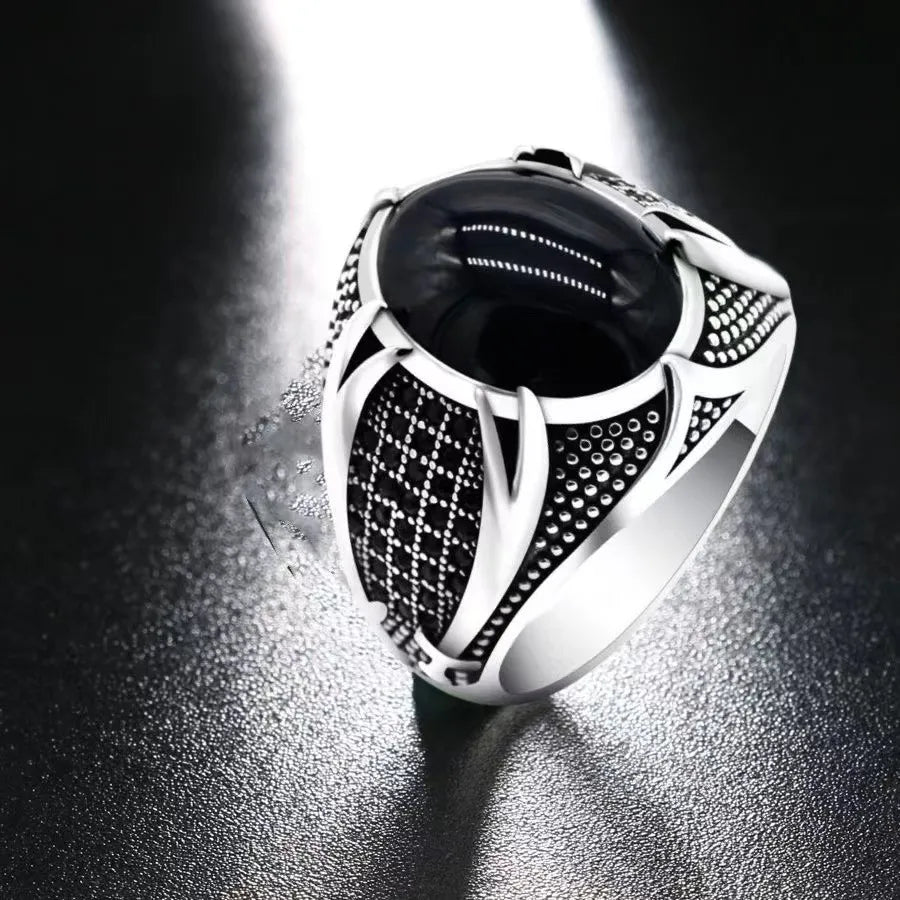 Noble atmosphere domineering imitation obsidian ring index finger trendy men's fashion opening wide version black diamond ring ring ring live mouth - Adjustable opening / [style a] imitation obsidian ring