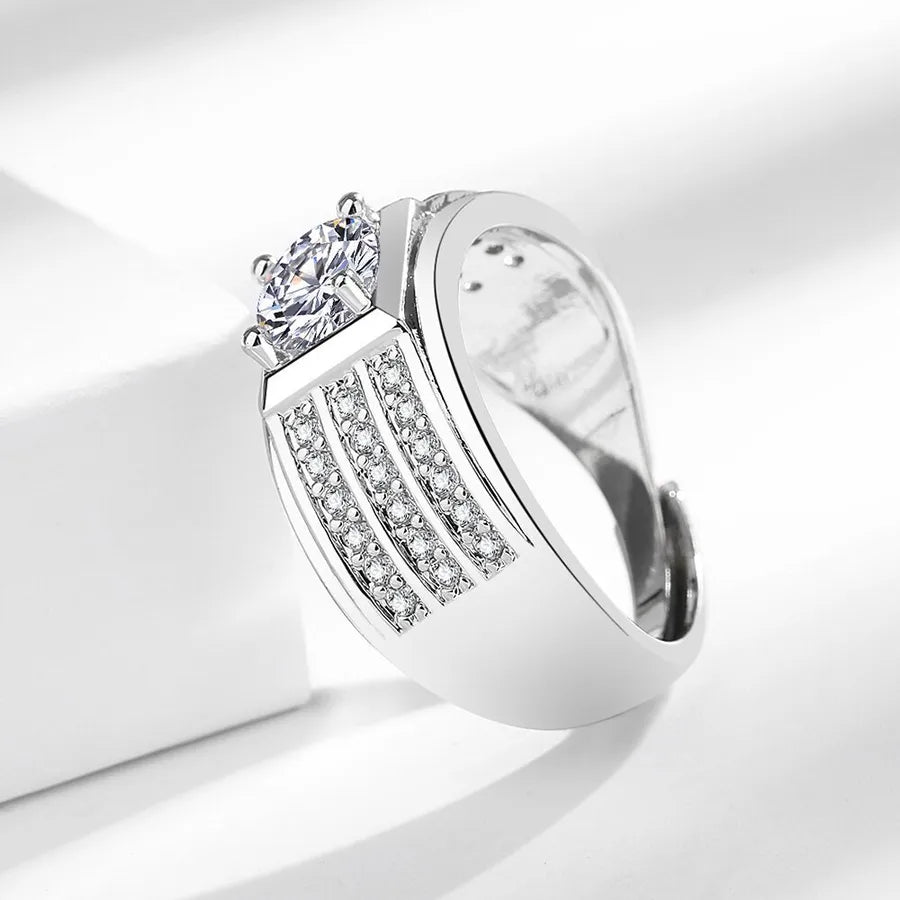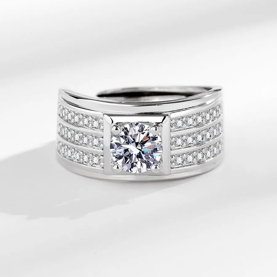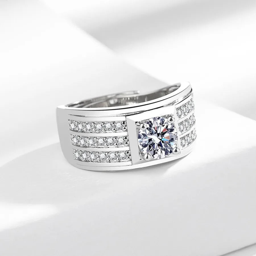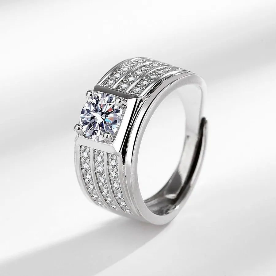Silver Plated One Carat Simulated Moissanite Ring For Men Proposal Ring Diamond Simulated Geometric Pattern Star Sign Design