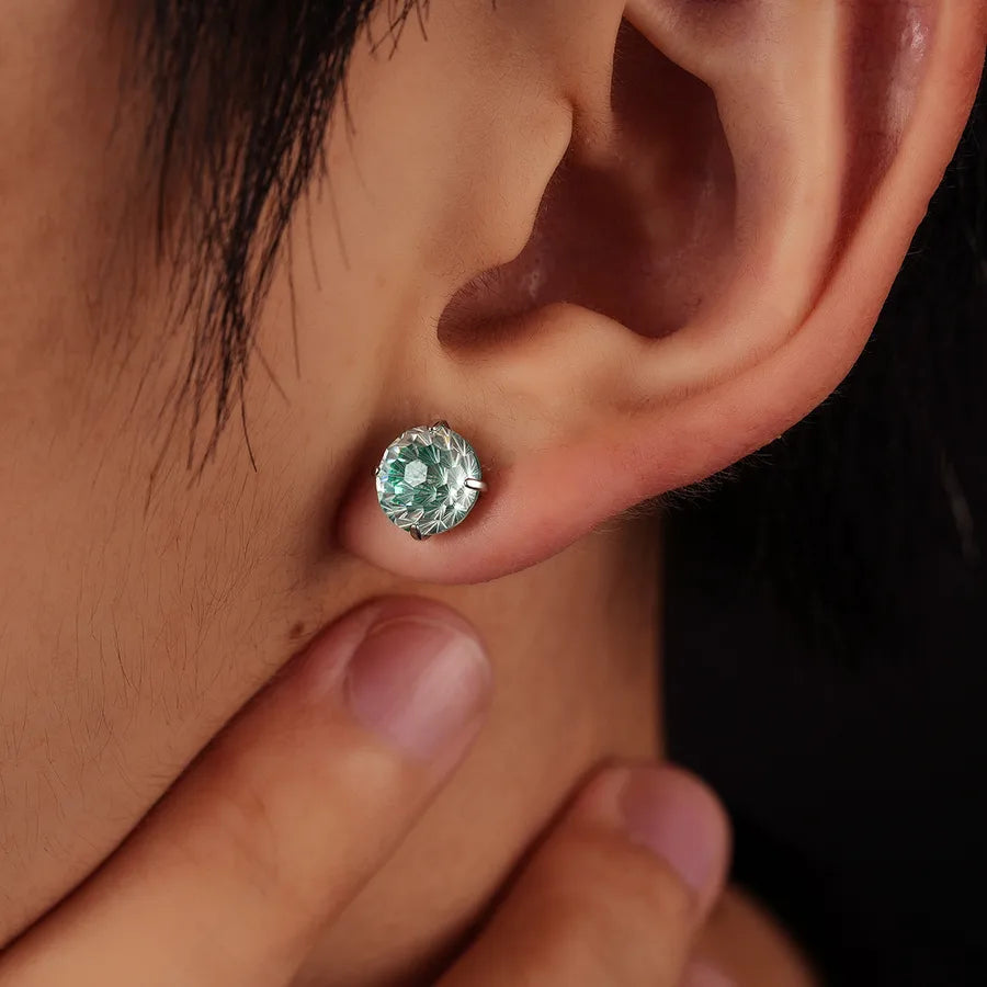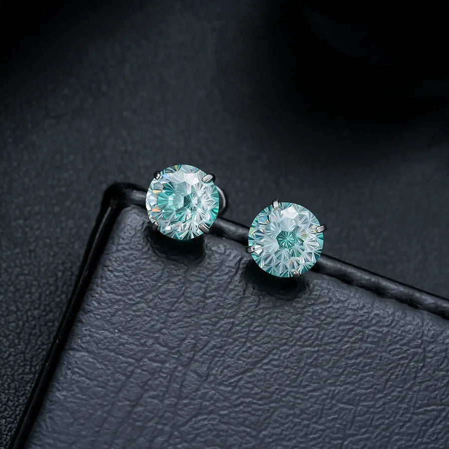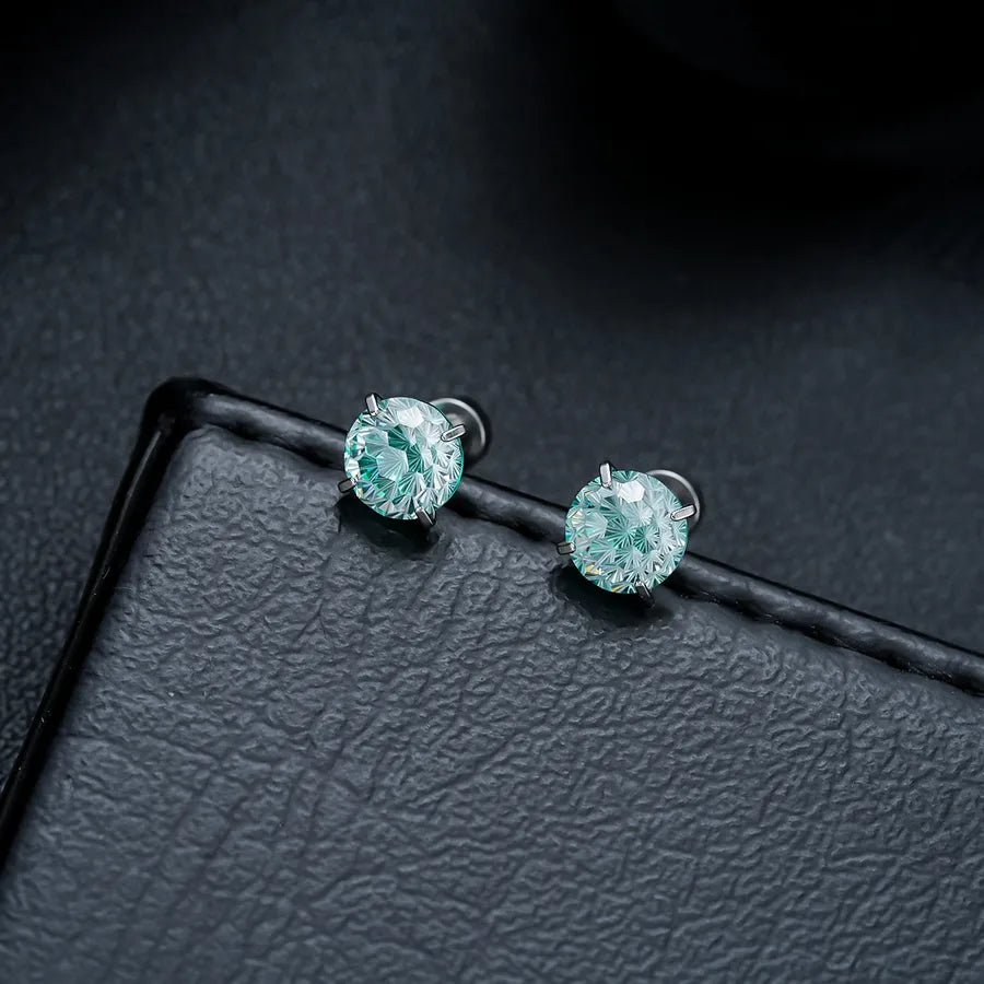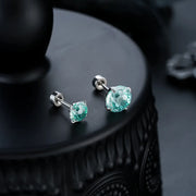 Fashionable Simple Luxury Mint Candy Four Claw Ear Studs Unisex Stainless Steel Geometric Pattern Zircon Embedded Earrings - X8888-A (Mint Candy Fireworks Cut) 6mm Single Piece