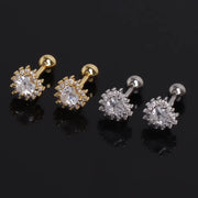Stainless Steel Heart Shaped Earrings Jewelry Zirconia Inlaid Ear Studs Men's Personality Electroplated Ear Jewelry Accessories - Silver(One Piece)