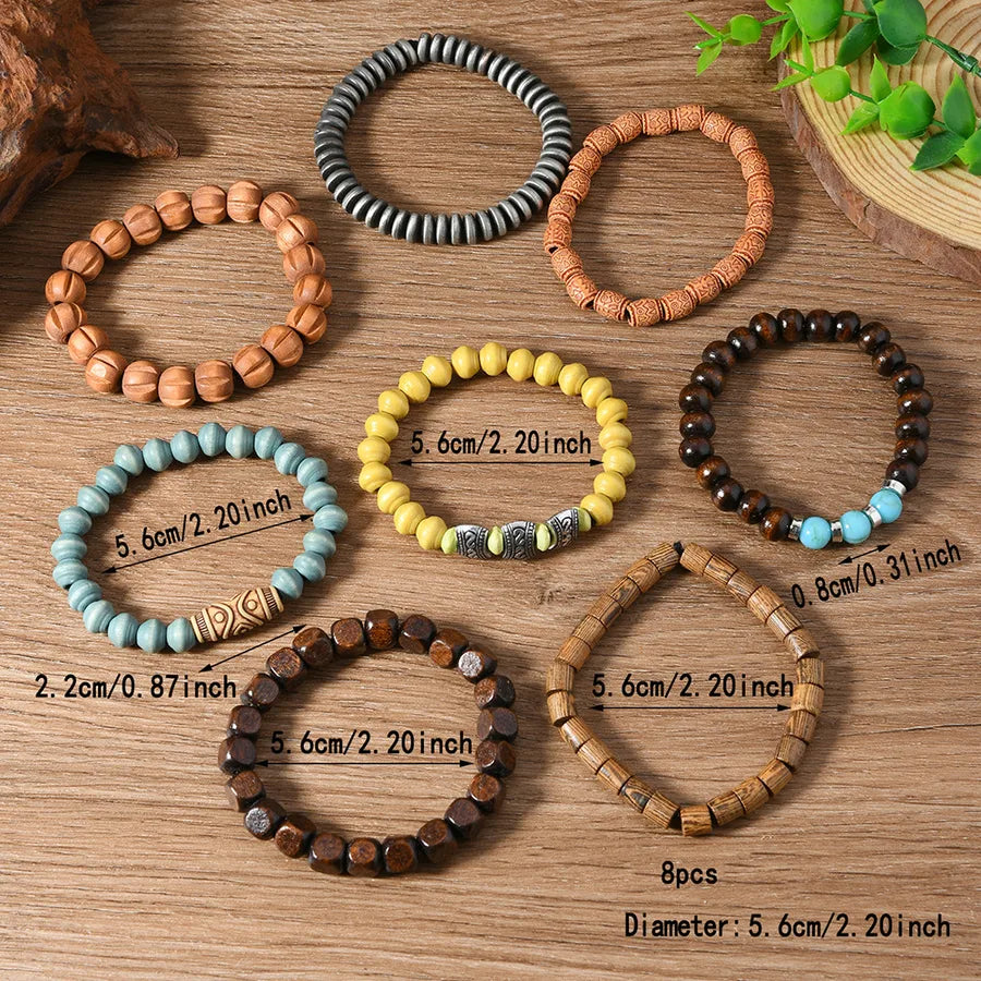 8-Piece Handmade Beaded Men's Retro Style Wooden Bead Bracelet Simple Casual Multi-Layer Filament Beads Bracelet - 8-Piece Set