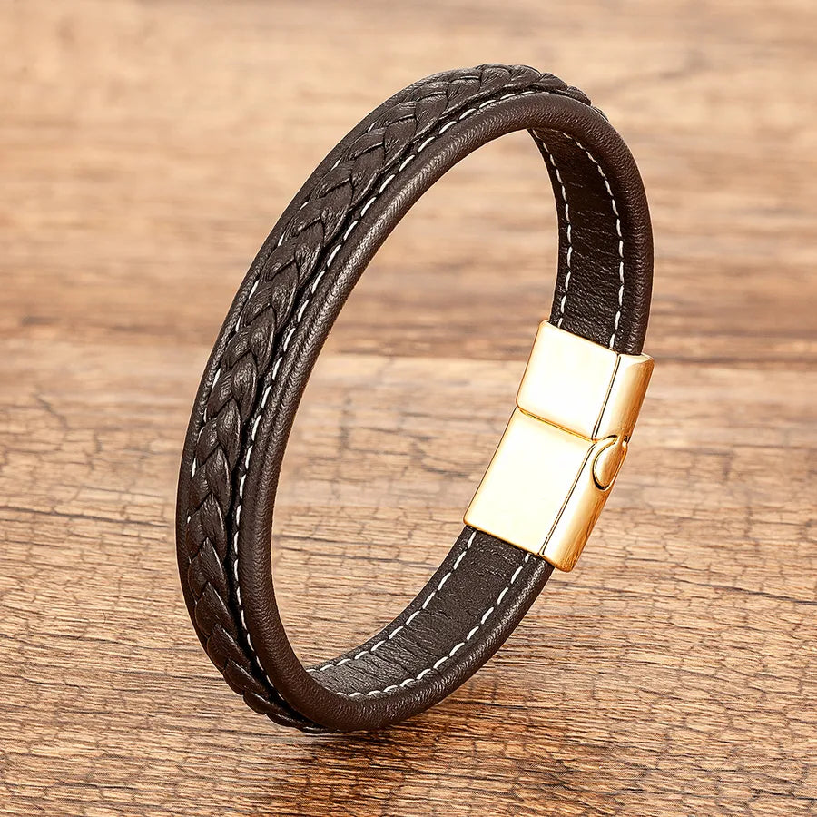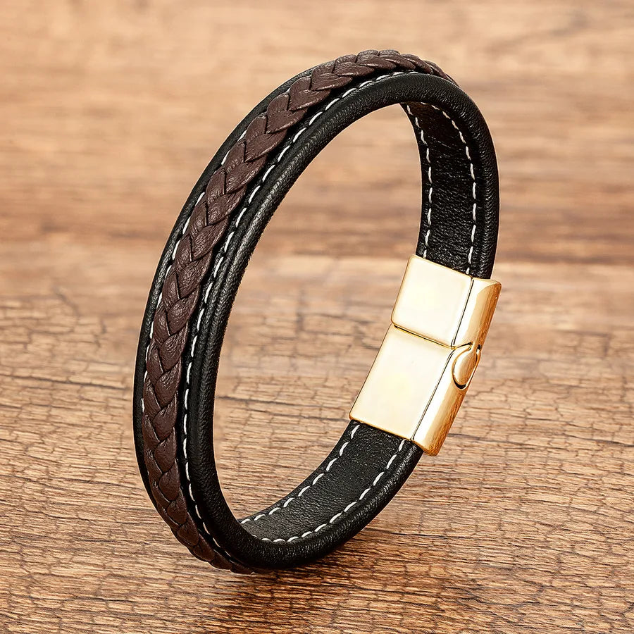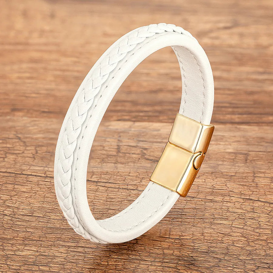 casual simple style solid color alloy braid unisex bracelets - 19cm / Green and Black Leather Rope