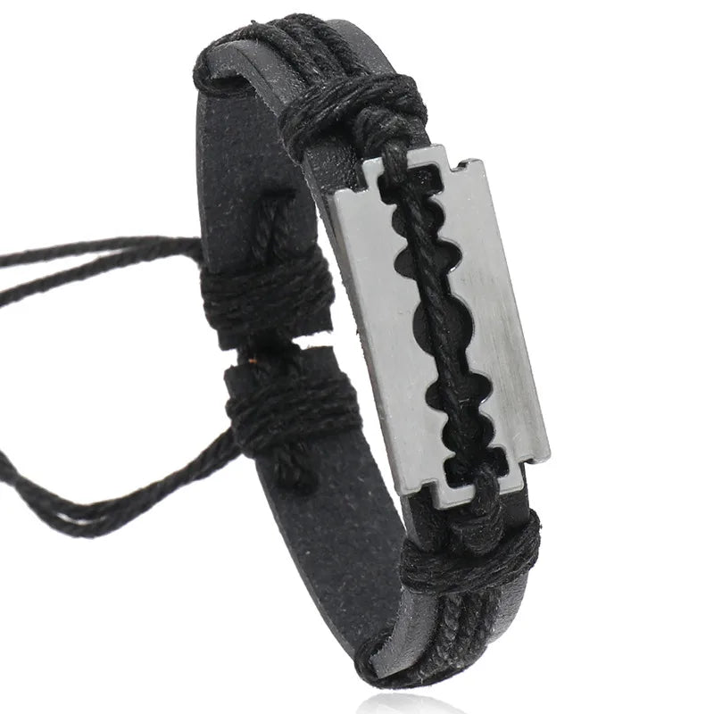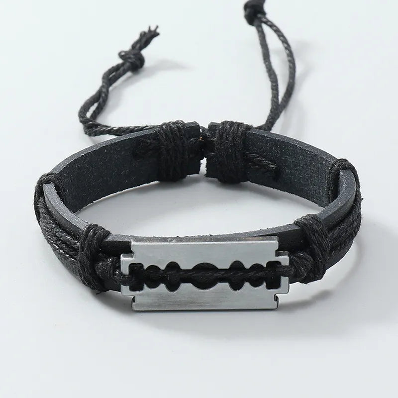 Casual Simple Style Streetwear Geometric Pu Leather Alloy Unisex Bracelets - Black