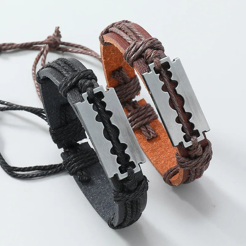 Casual Simple Style Streetwear Geometric Pu Leather Alloy Unisex Bracelets