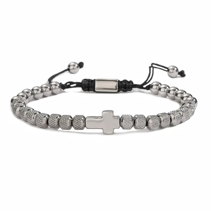 classic style commute cross stainless steel copper beaded bracelets - Steel Color