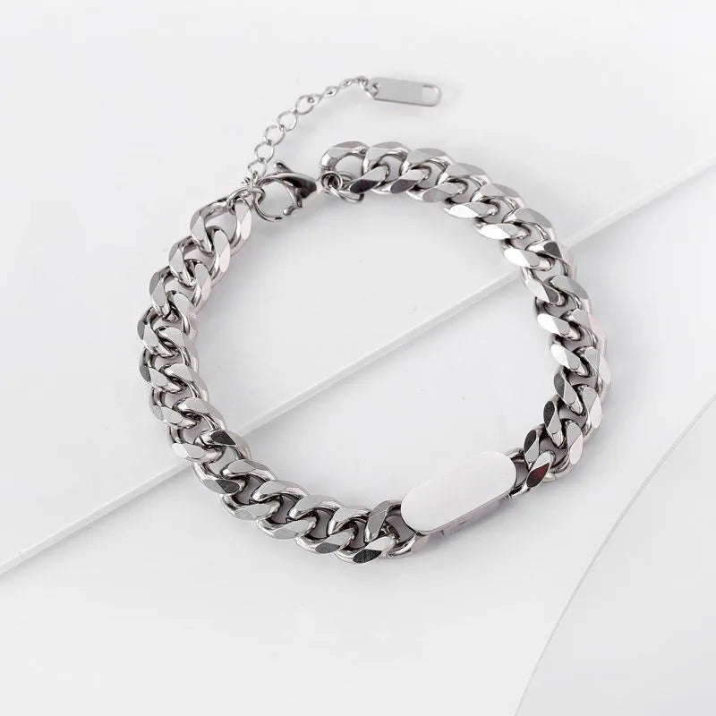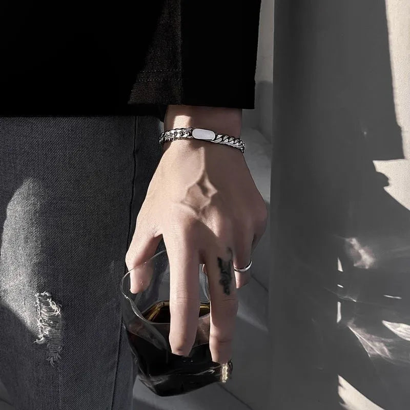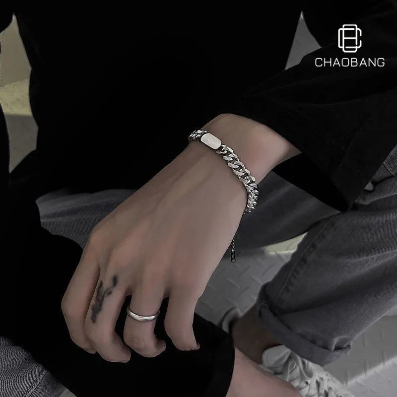 Cuban Titanium Steel Bracelet Men's Fashion Minimalist Design Hip Hop Cool Large Jewelry Accessories Diamond Rhombus Pattern - S003-A Single Bracelet