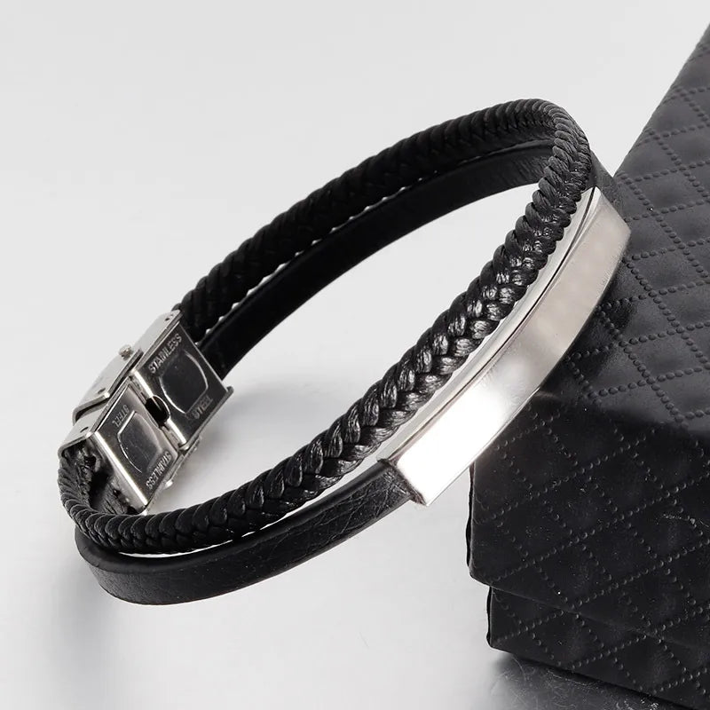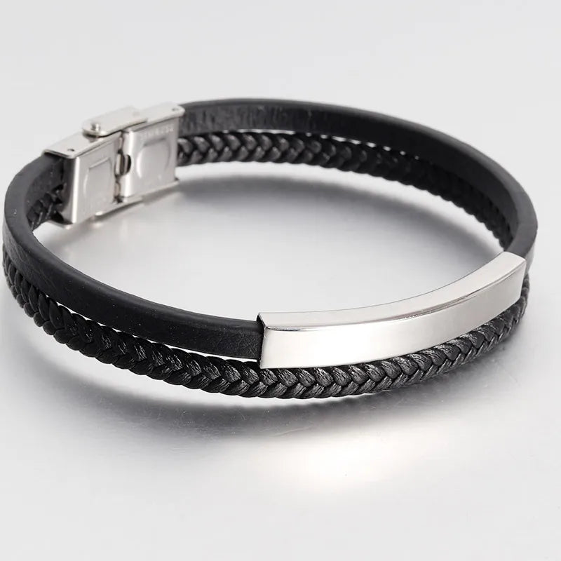 Double Layer Leather Cord Bracelet Men's Stainless Steel Genuine Leather Bracelet Handmade Leather Bangle Snap Bracelet Jewelry
