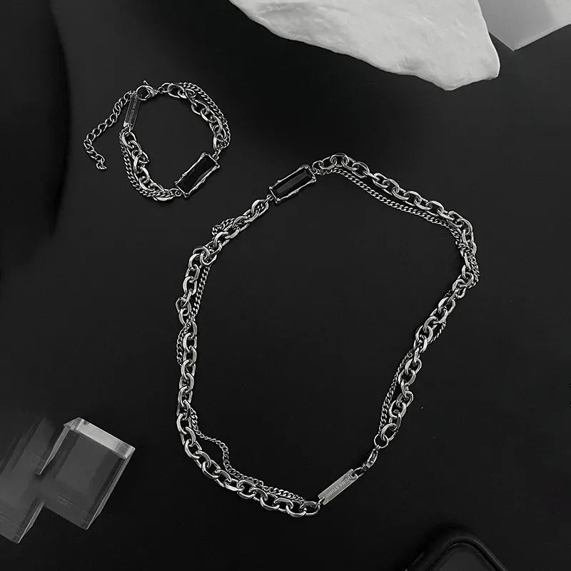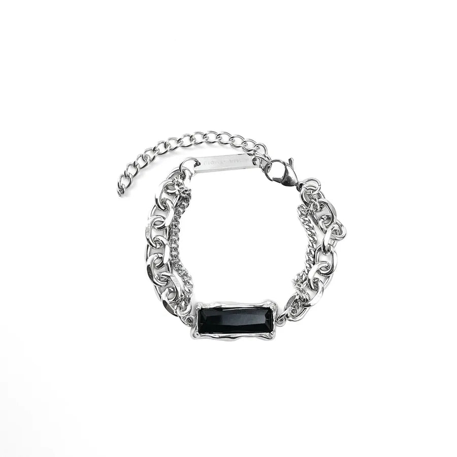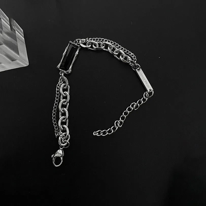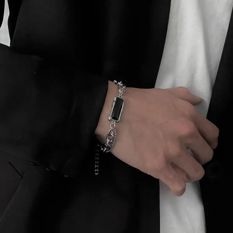 Double Layer Titanium Steel Square Bracelet Men's Unique Design High End Trendy Ins Bracelet Simple New Style Men's Jewelry - Double Layer Black Square Nameplate Bracelet