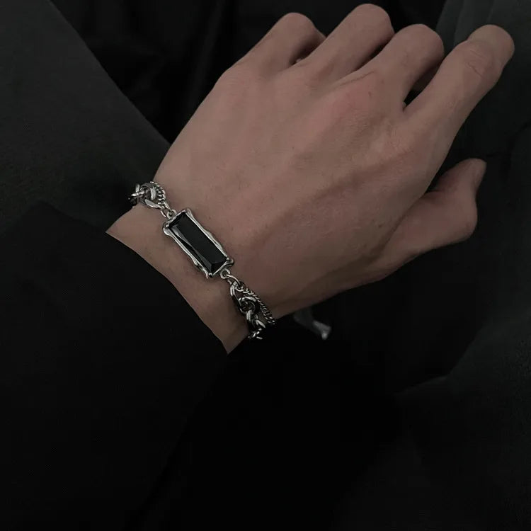 Double Layer Titanium Steel Square Bracelet Men's Unique Design High End Trendy Ins Bracelet Simple New Style Men's Jewelry