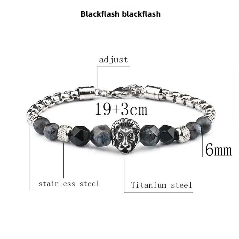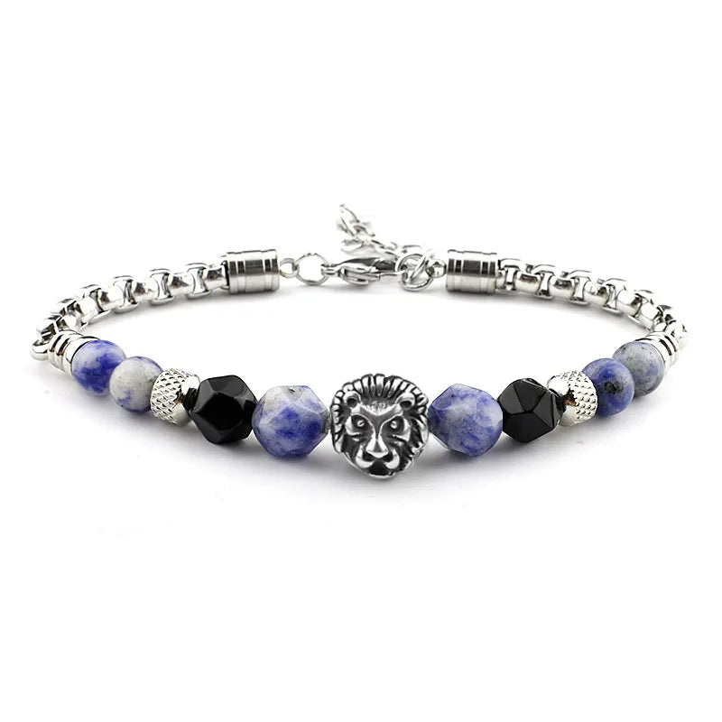 Elegant Stainless Steel Lion Head Bracelet For Men Aggressive Style Design Titanium Steel Full Star Craft - White Dot Blue Lion Bracelet